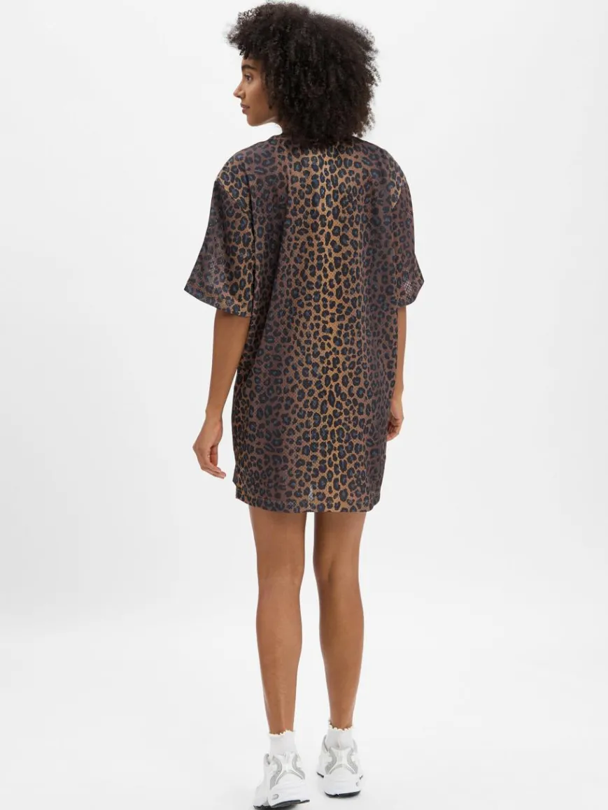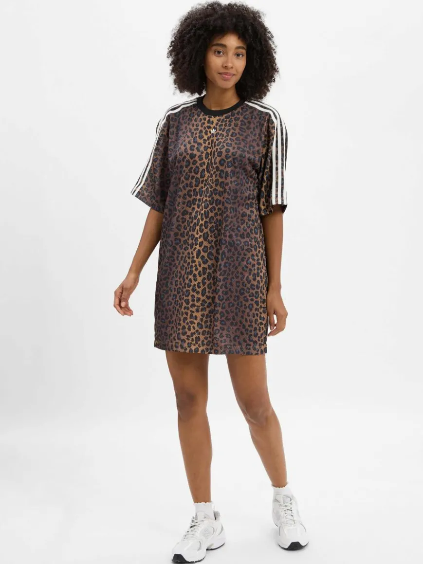 Das Jerseykleid von adidas Originals punktet im Trikot-Style mit Animal-Muster und den drei ikonischen Streifen im Schulterbereich.