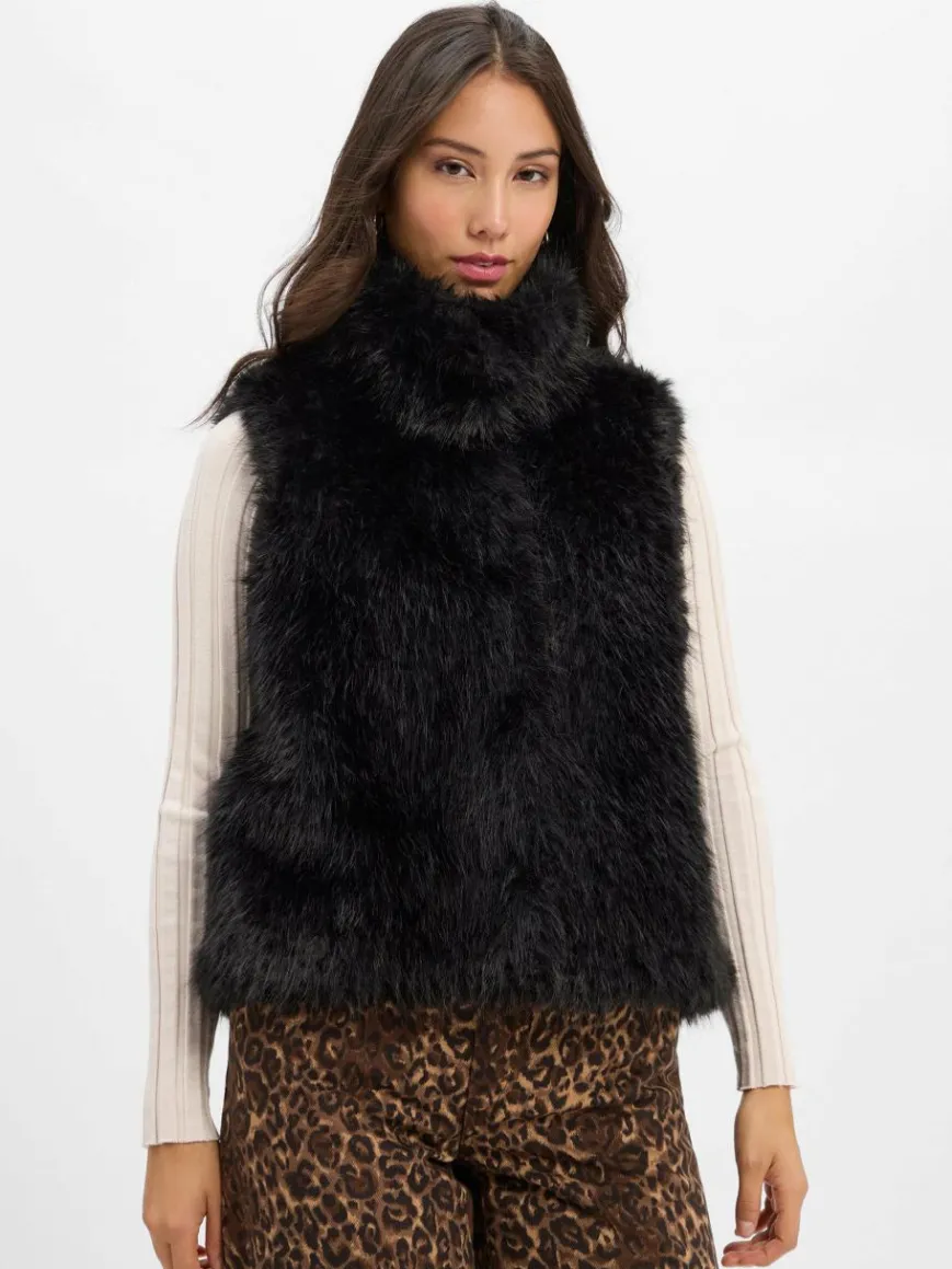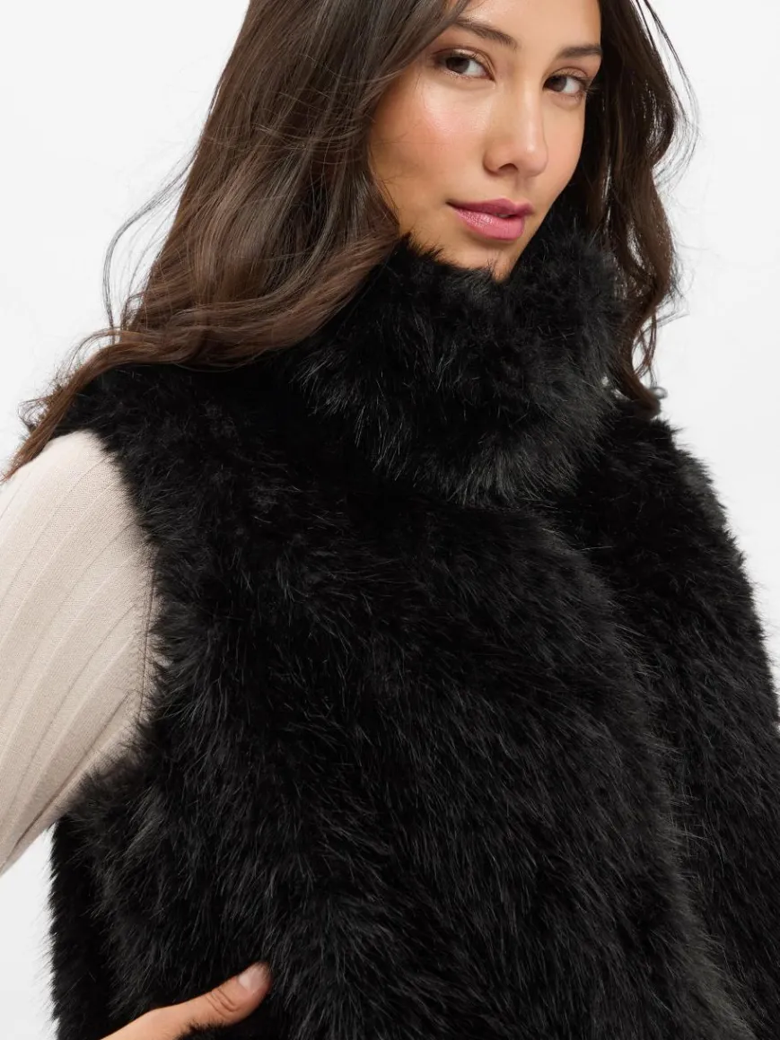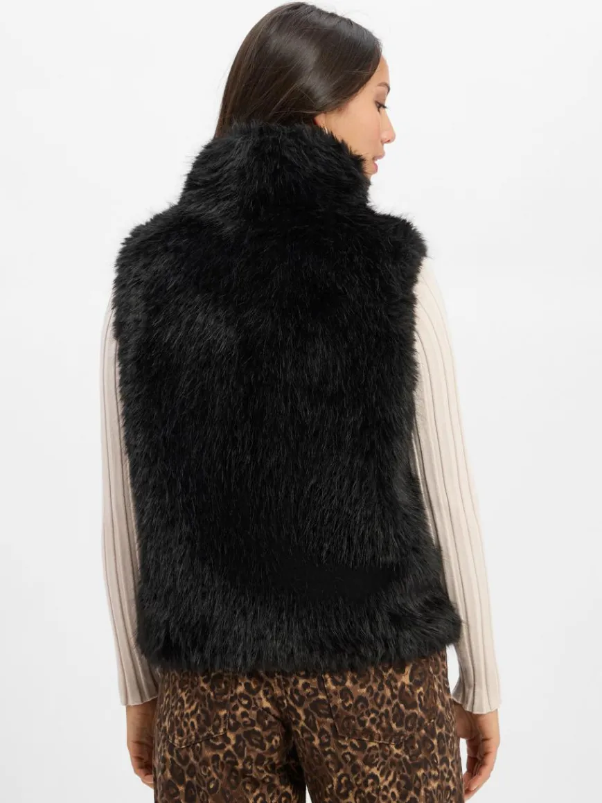 Die stylishe Damenweste aus kuschelweichem Kunstfell von Amber & June wärmt und perfektioniert den Look.