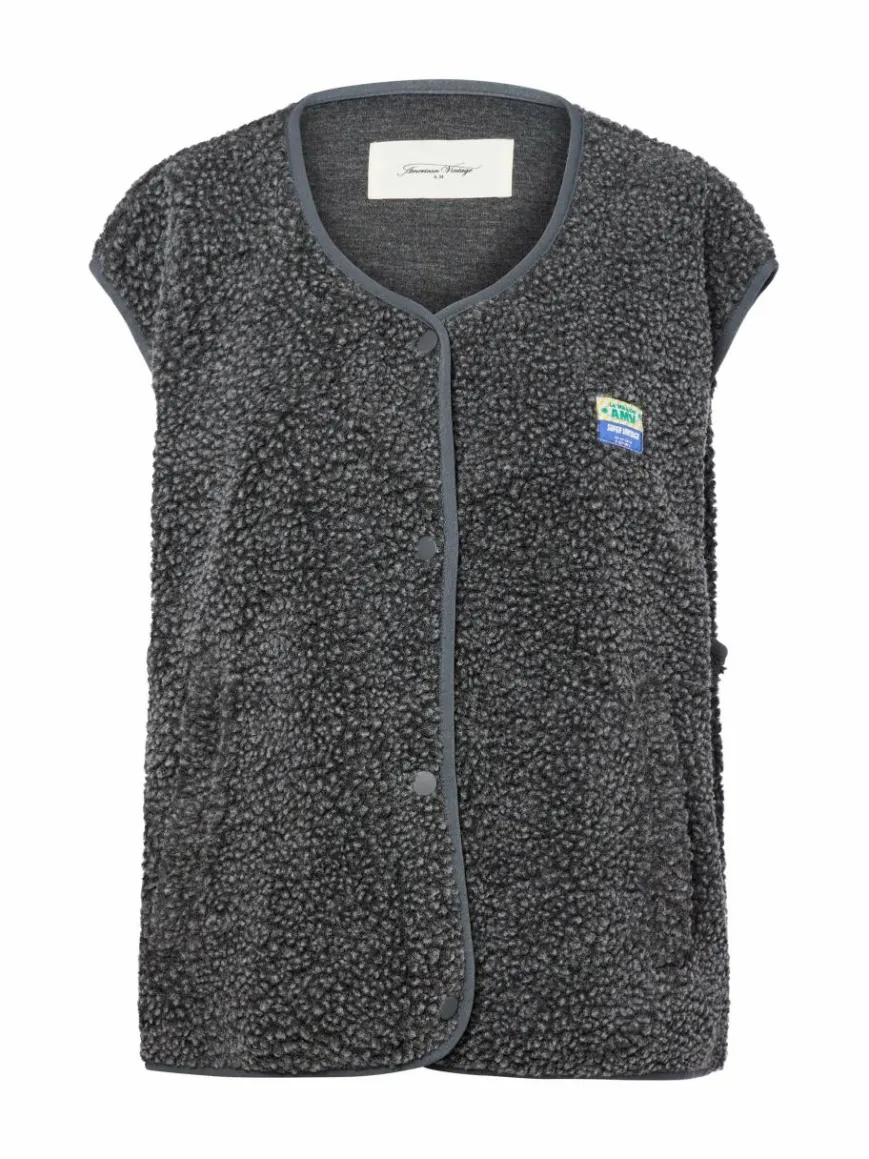 Die leichte Weste von american vintage trägt sich wie ein leichter ärmelloser Pullover, mutet aber mit ihrer Teddyfell-Haptik nach warmen Komfort an. Gut kombiniert ist diese Weste ein wahres Itpiece.