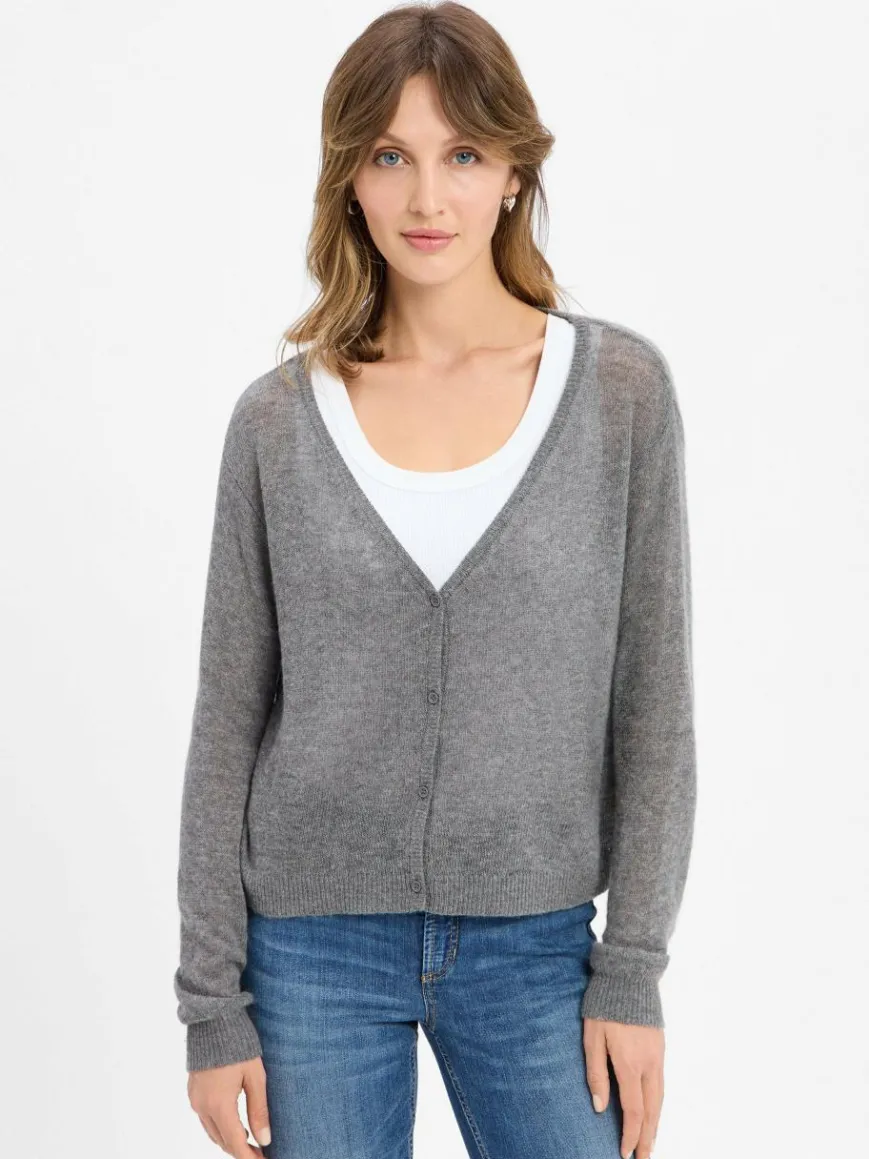 american vintage Pullover & Strickjacken*Damen Strickjacke mit Cashmere-Anteil – Dumy grau meliert