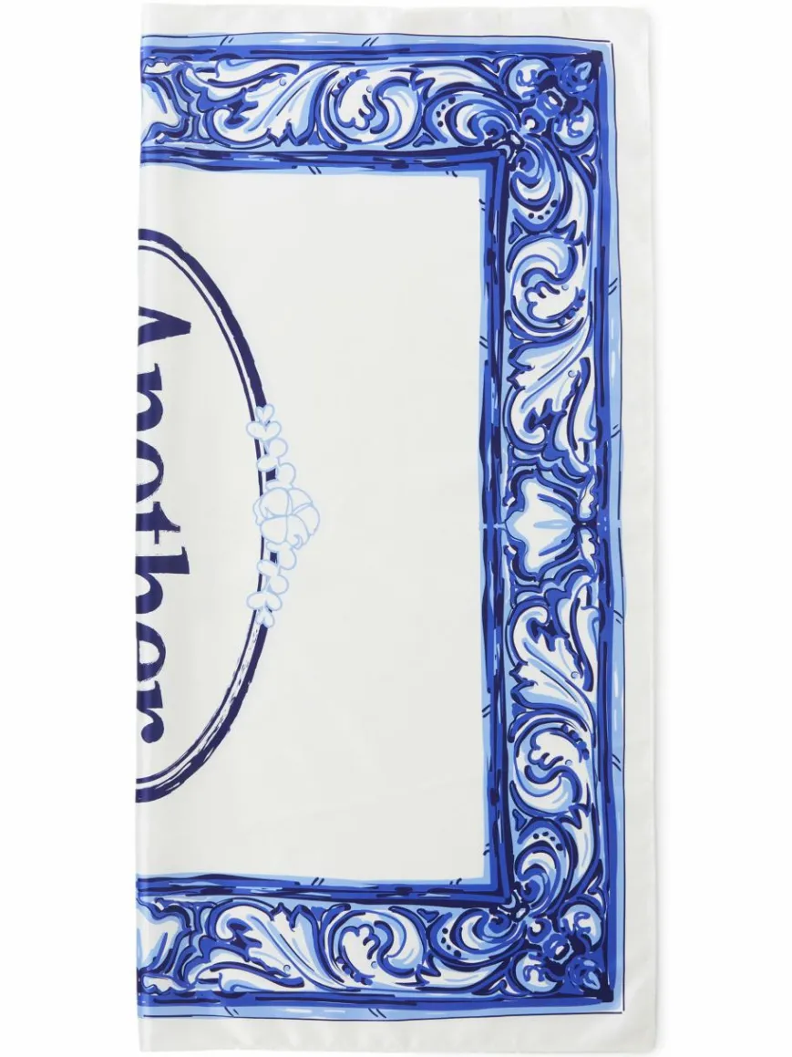 Das Tuch von Another Cotton überzeugt mit seinem plakativen Label-Look, einer weichen Satin-Qualität und modernen Gesamtoptik.