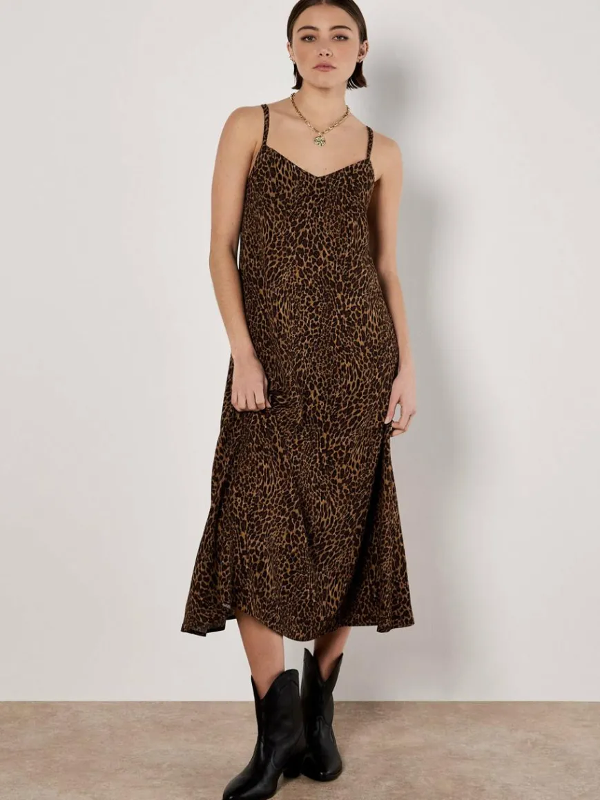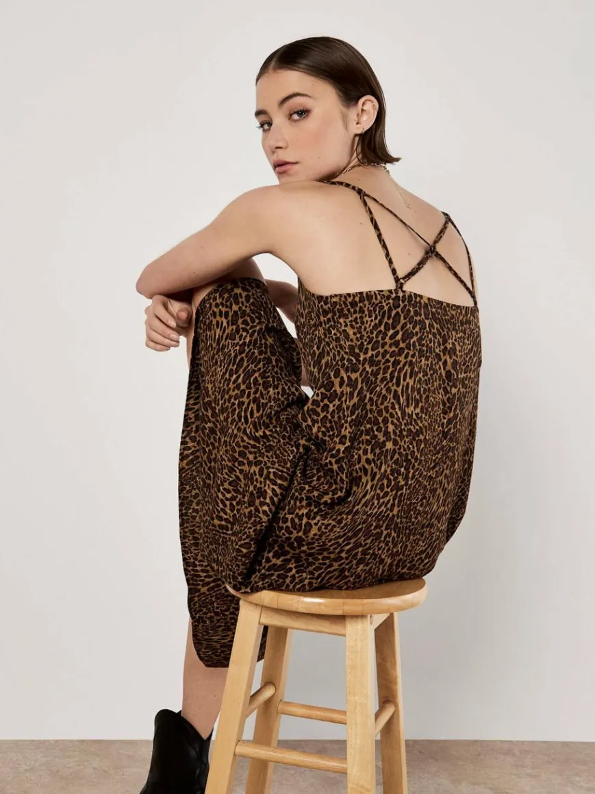 Dieses Maxikleid mit zeitlosem Tierprint und leichtem, gewebtem Finish ist ein Must-have für die kommende Saison. Es ist figurbetont geschnitten und verfügt über einen weichen V-Ausschnitt und doppelte Camisole-Träger, die sich auf der Rückseite überkreuzen und für zusätzliches Interesse sorgen.