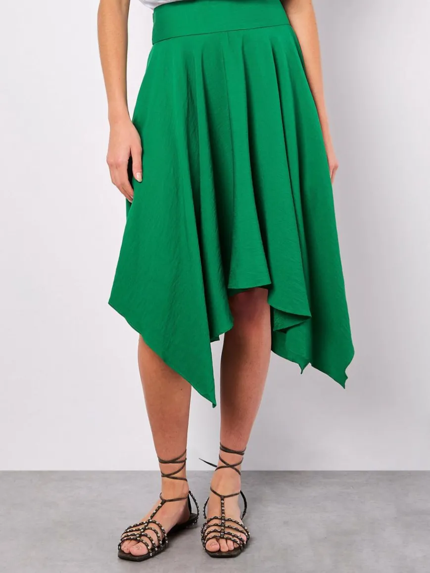 Bringen Sie Ihre Garderobe mit diesem sonnenscheintauglichen Rock zum Strahlen. Er ist leicht und gewebt, fällt auf eine Midi-Länge und verfügt über einen Taschentuch-Saum, einen Reißverschluss und einen Stoffgürtel für eine schmeichelhafte Passform.