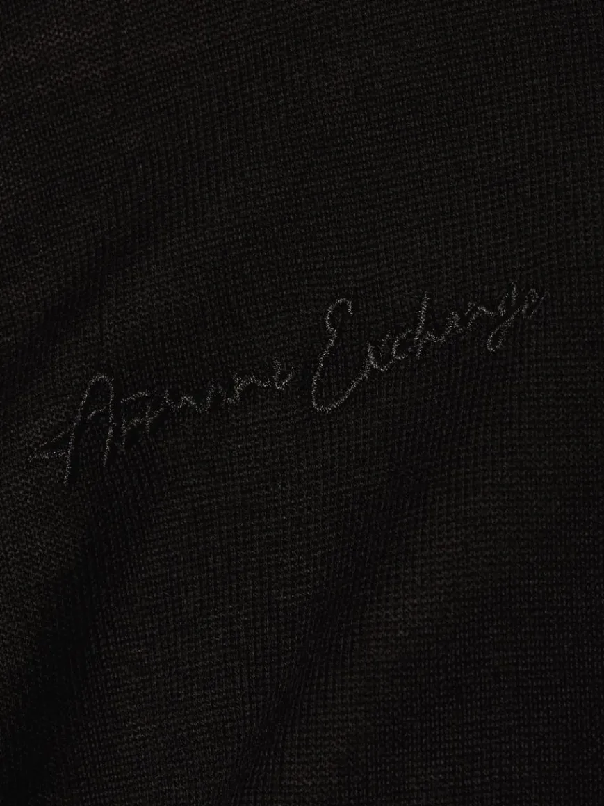 Der Armani Exchange Pullover besteht aus leichter Schurwolle und zeichnet sich durch gerippte Bündchen und ein toniges Labelstitching auf Brusthöhe aus.