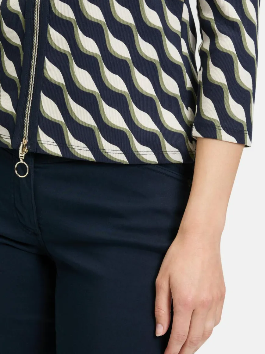 Das Kleidungsstück ist ideal für die Freizeit geeignet und verkörpert den perfekten Urlaubs-Look. Die Shirtjacke mit 3/4 Arm ist perfekt für die Freizeit. Ihr taillierter Schnitt bietet eine schmeichelhafte Passform, während der angenehme Materialmix für optimalen Tragekomfort sorgt. Mit dem Rundhalsausschnitt und dem Streifenmuster verleiht die Jacke Ihrem Outfit einen stilvollen Look.