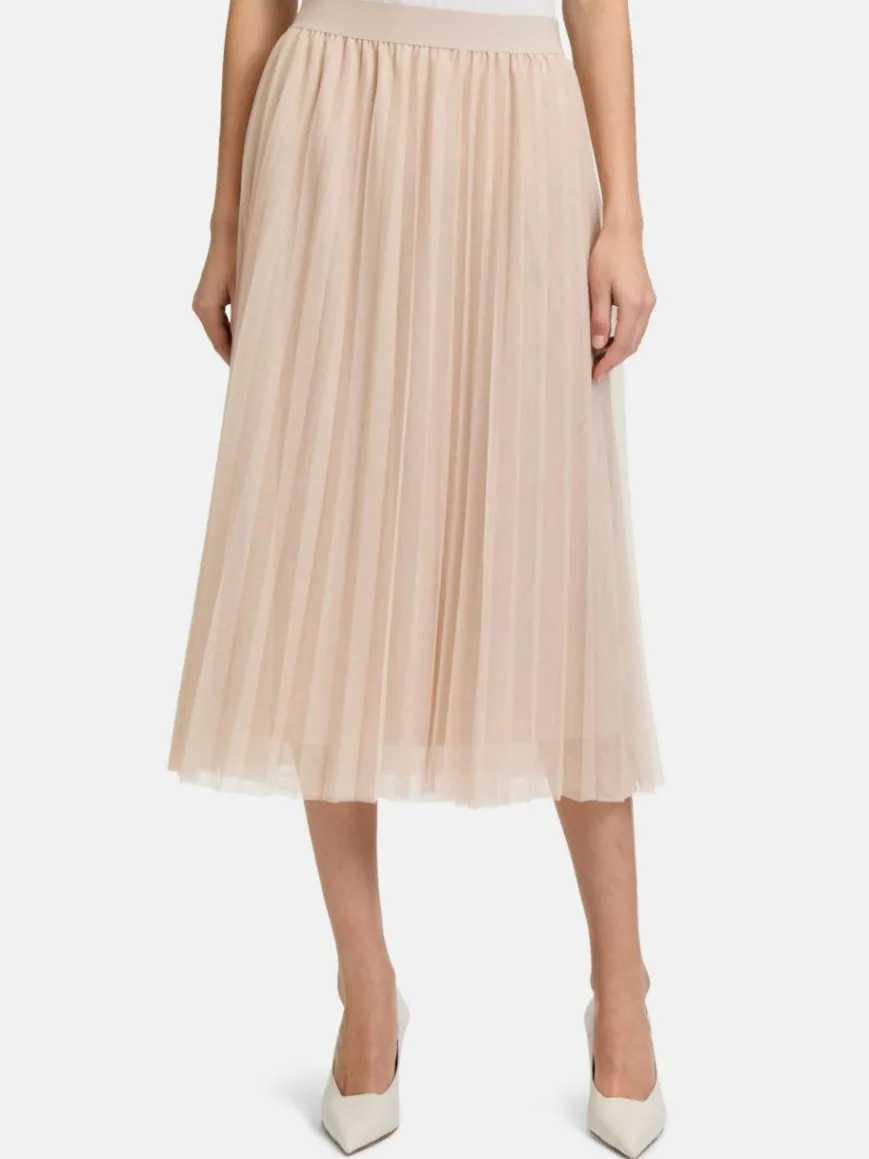 Dieser Midirock vereint feminine Eleganz mit lässigem Komfort. Das figurschmeichelnde Plissee und das unifarbene Design verleihen ihm eine stilvolle, zeitlose Ausstrahlung. Ein besonderes Bunddetail und der praktische Gummizug sorgen für einen bequemen Sitz, während der Verzicht auf einen Verschluss ein unkompliziertes An- und Ausziehen ermöglicht. Ein vielseitiges Basic, das sich ideal für elegante wie auch entspannte Looks kombinieren lässt – ein Must-have für jeden Kleiderschrank!