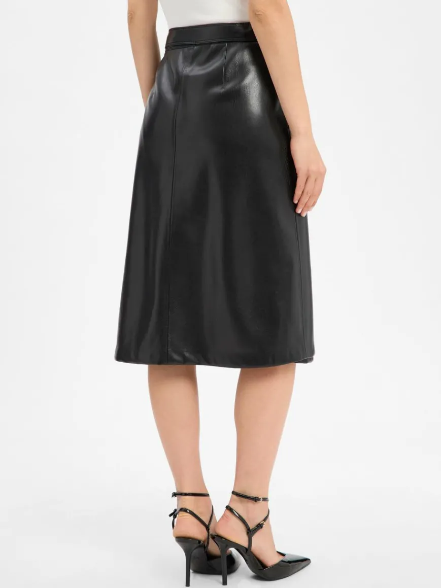 Der Wickelrock Vinny von BOSS aus glattem Kunstleder überzeugt mit moderner Silhouette und edlem Finish.