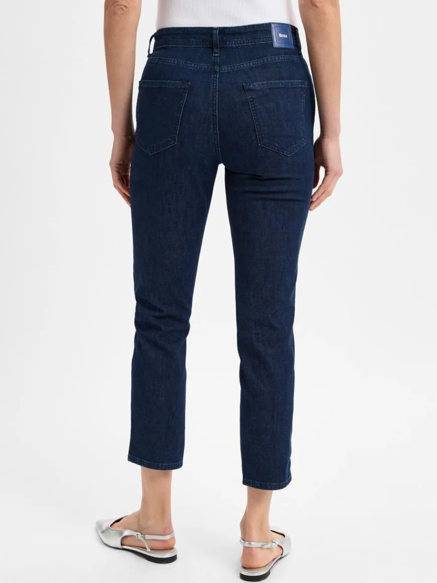 Die verkürzte Slim Fit Jeans Mary von BRAX aus leicht stretchigem Baumwoll-Denim begeistert mit einer figurbetonten Passform und funkelndem Zierstein-Besatz – für einen eleganten, modernen Look.