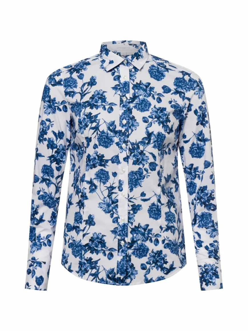 brookshire Blusen*Damen Bluse weiß blau gemustert