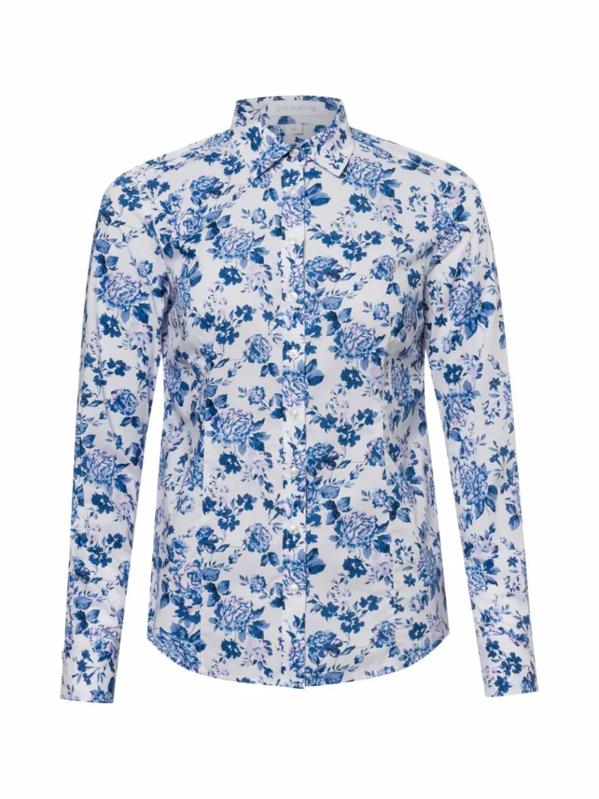 brookshire Blusen*Damen Bluse weiß blau gemustert