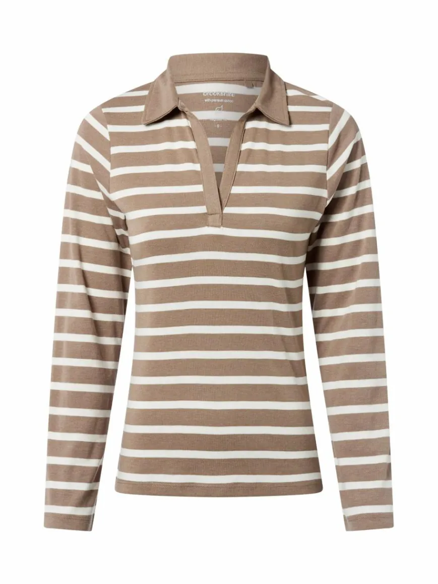 brookshire Shirts & Tops*Damen Poloshirt taupe weiß gestreift