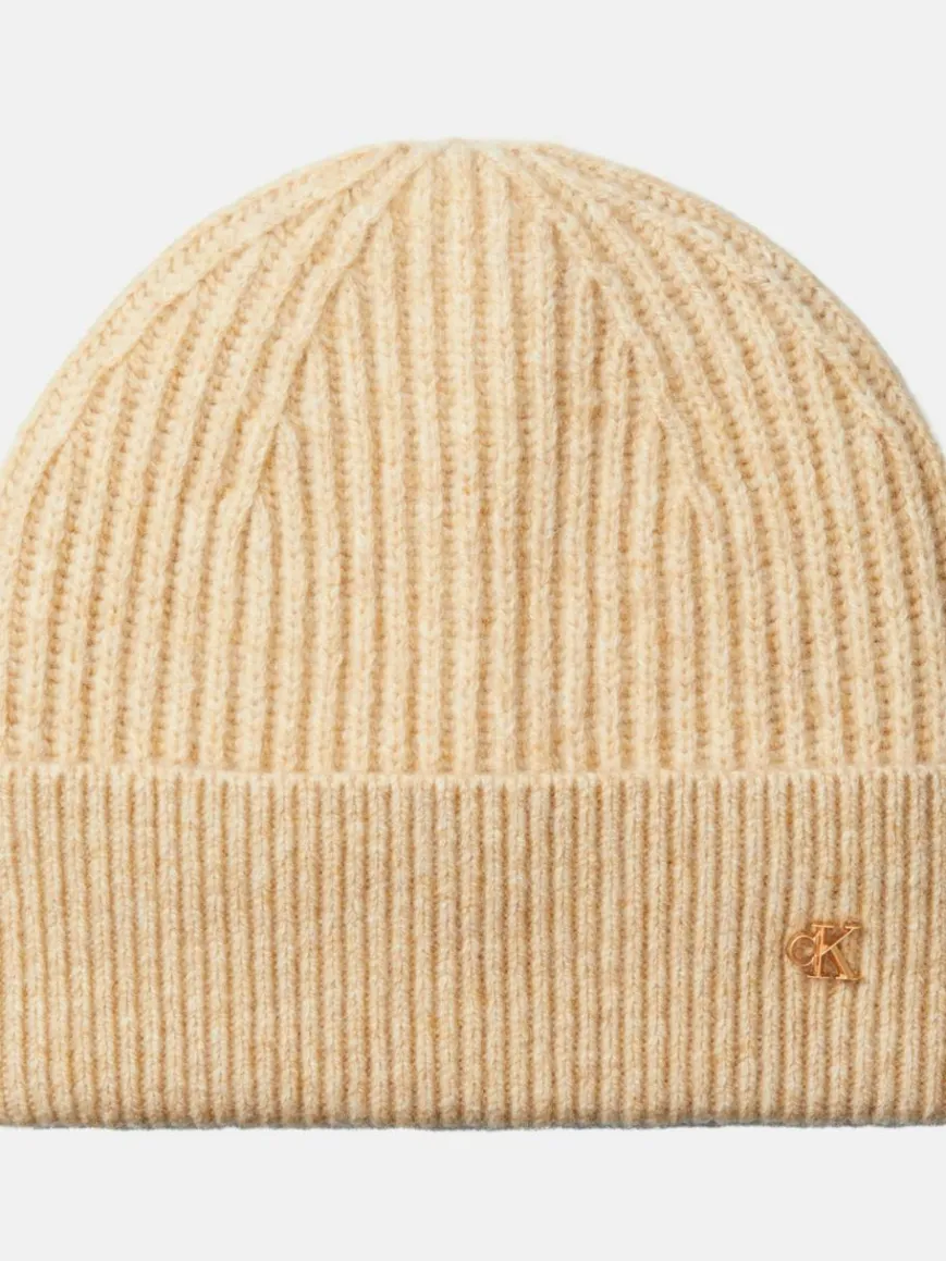 Die Strickmütze von Calvin Klein besticht durch ein cleanes Design mit tonigem Logo und Ripp-Qualität aus Lammwoll-Mix und sorgt so für einen warmen Kopf.