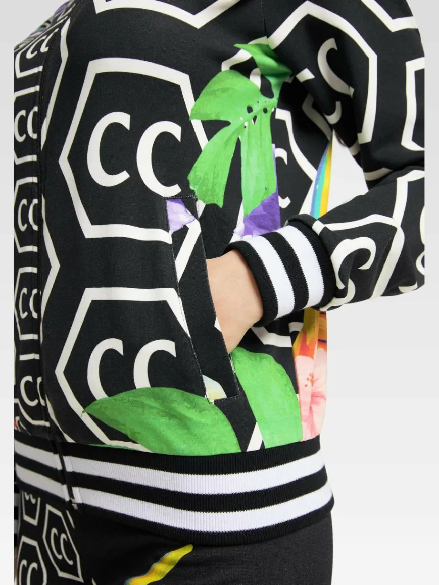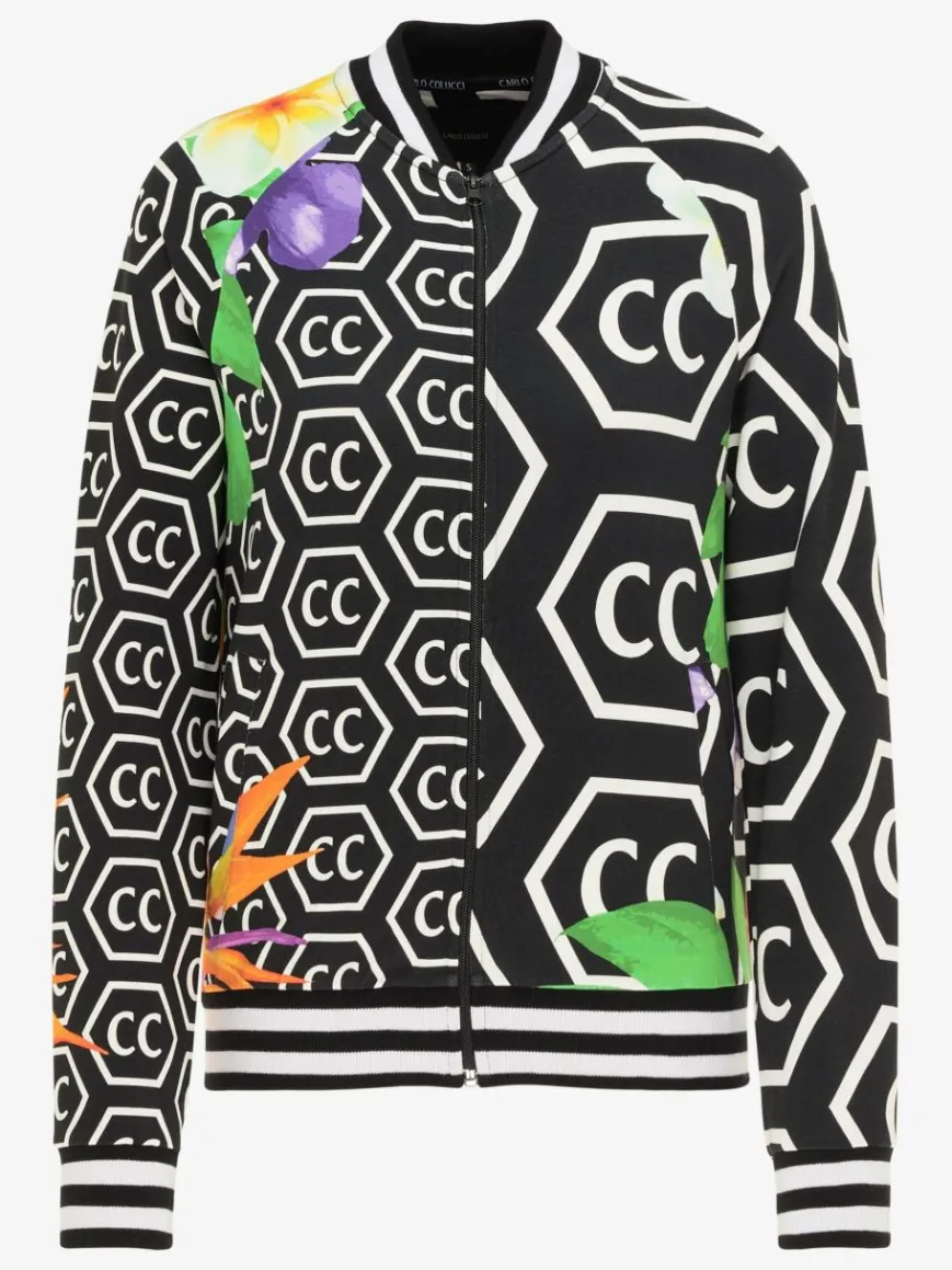 Carlo Colucci Sweatshirts & Sweatjacken*Damen Sweatjacke – Cologna schwarz gemustert