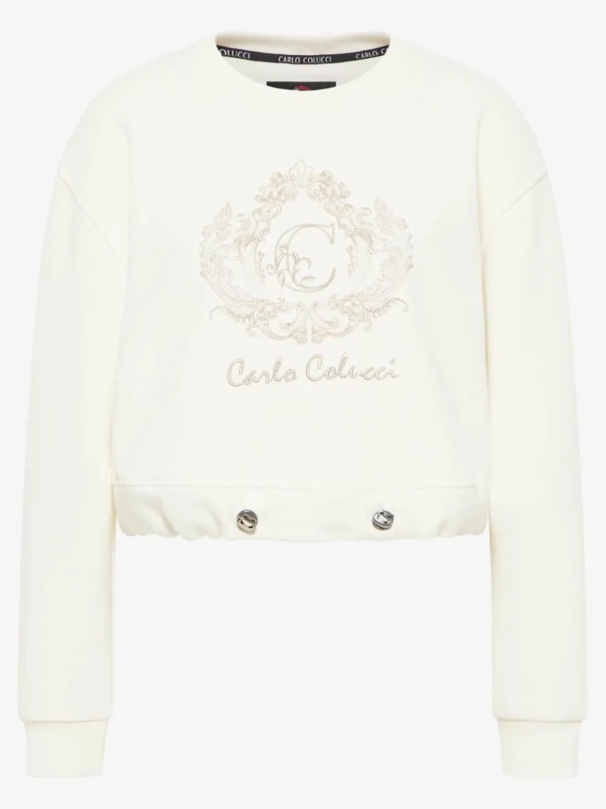 Carlo Colucci Sweatshirts & Sweatjacken*Damen Sweatshirt – De Bacco weiß gemustert