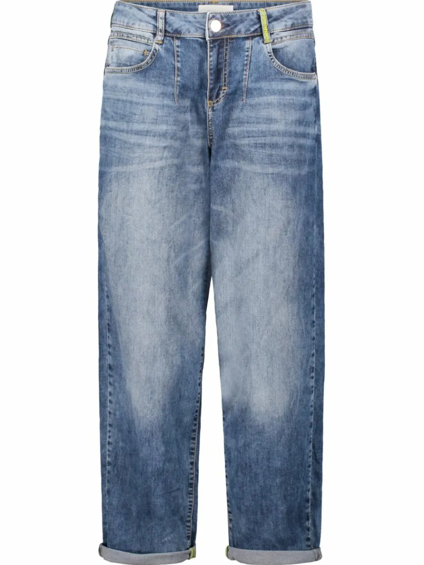 Diese Used Look-Jeans überzeugt mit einer lockeren Passform und einem leichten Stoff, der für besonders angenehmen Tragekomfort sorgt. Das modische Bunddetail und die coole Used-Waschung verleihen der Jeans einen entspannten, modernen Look. Im Loose Fit ud mit Mid Waist Schnitt sitzt sie bequem und lässig, während der Reißverschluss und die 5-Pocket-Details den klassischen Jeans-Stil unterstreichen. Perfekt für die Freizeit!