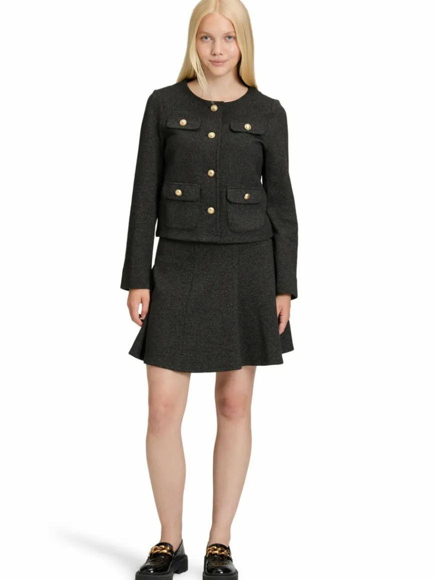 Der Minirock von Cartoon setzt mit Stretch-Qualität und Zickzack-Muster stilvoll auf Tragekomfort – in Kombination mit dem passenden Blazer entsteht ein elegantes Ensemble.