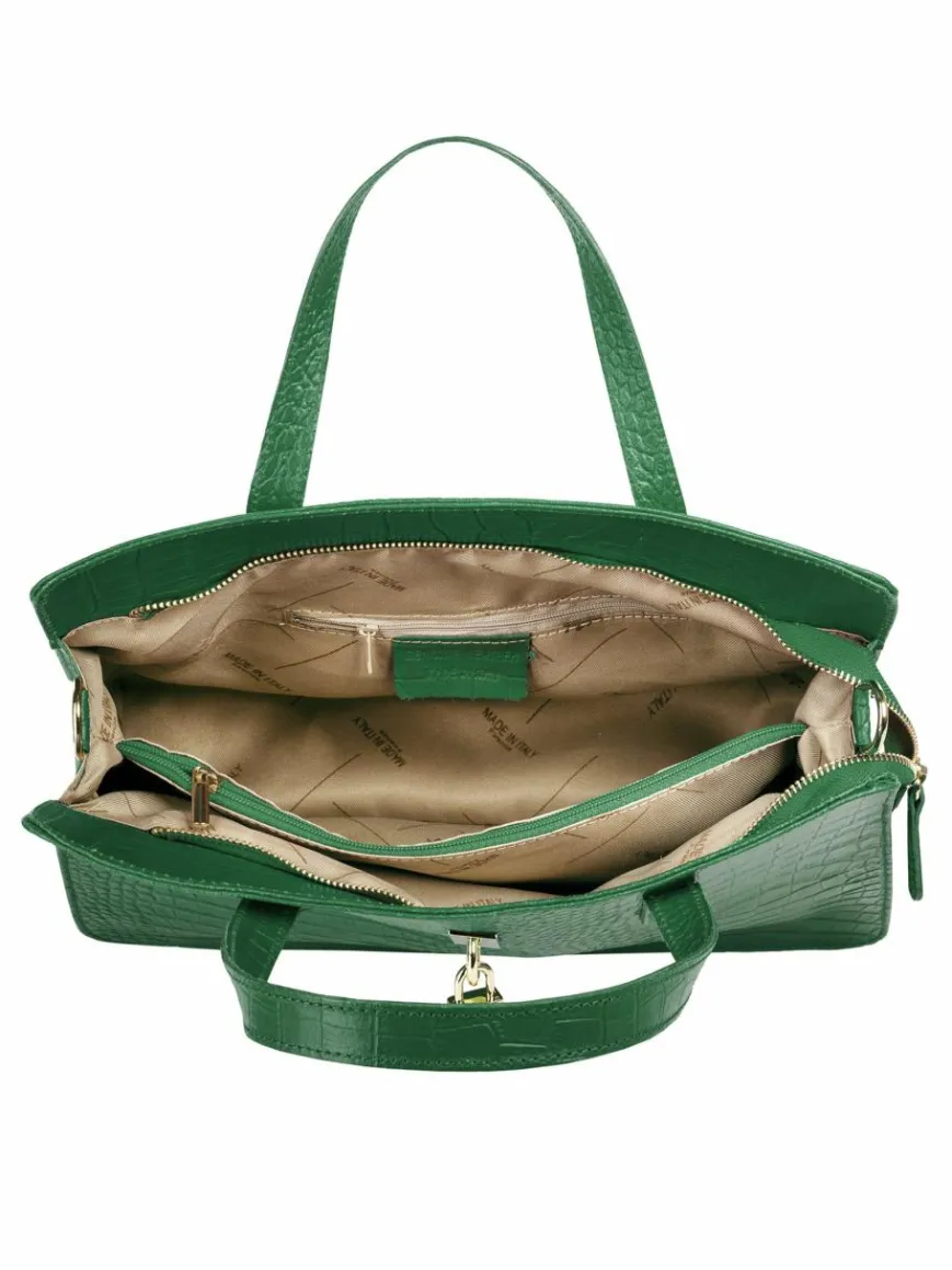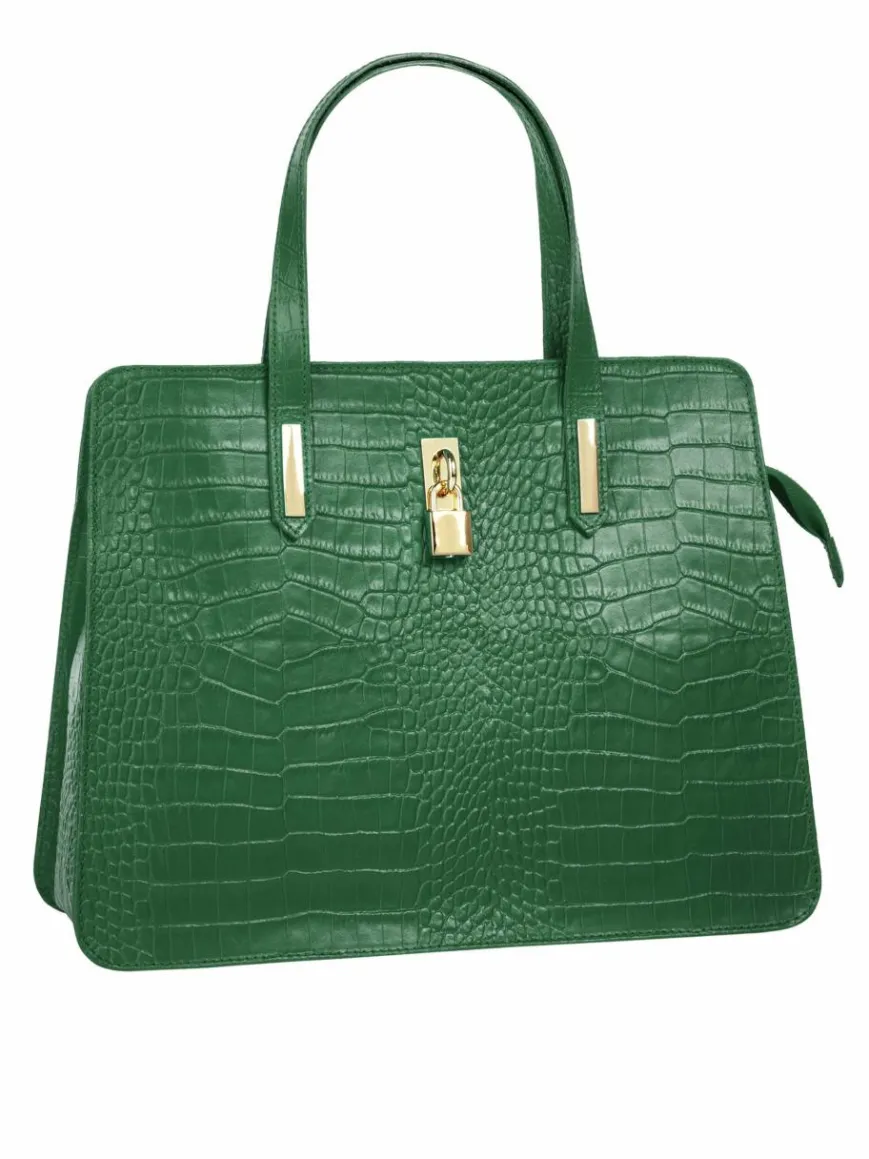 - Elegante Größe & Marke: Die Cluty Damen Handtasche aus 100% Rindleder misst 28x36x8 cm und überzeugt mit stilvoller Kroko-Optik und goldenen Details.