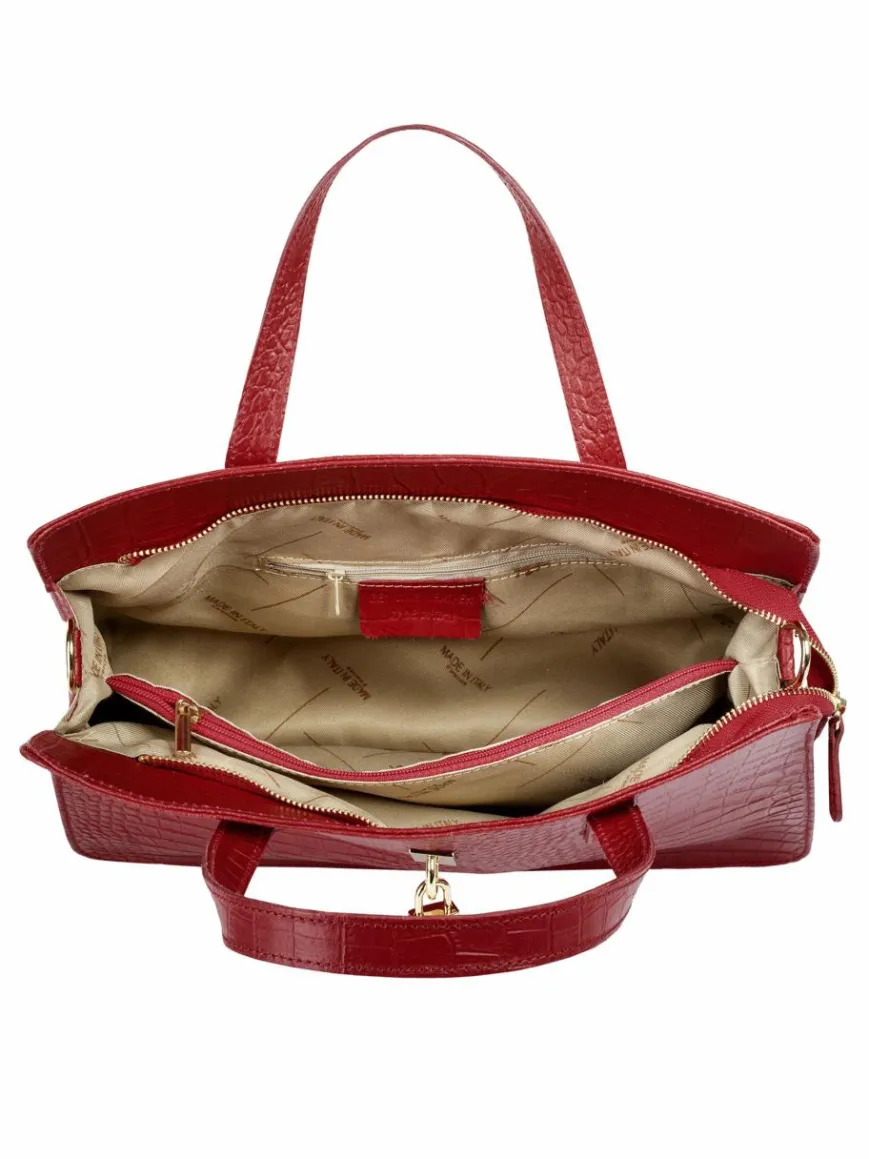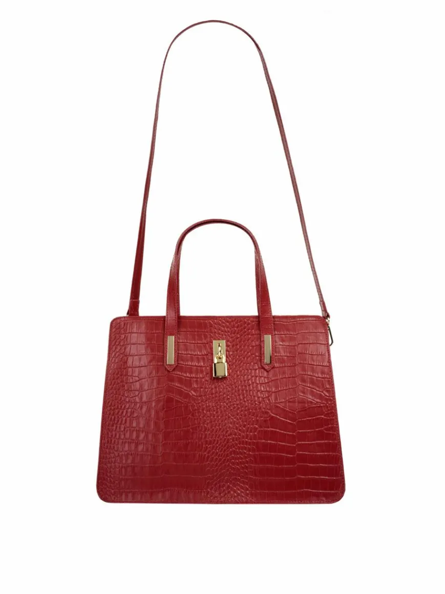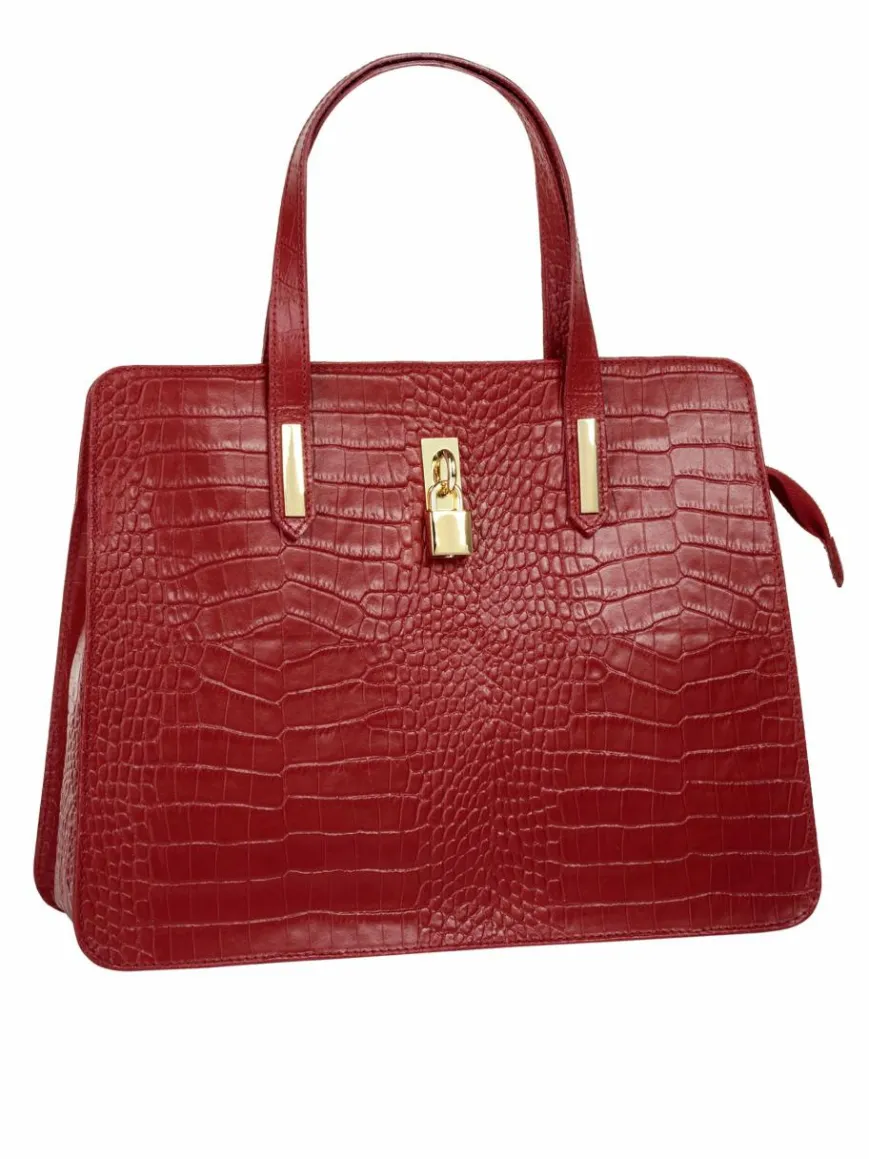 - Elegante Größe & Marke: Die Cluty Damen Handtasche aus 100% Rindleder misst 28x36x8 cm und überzeugt mit stilvoller Kroko-Optik und goldenen Details.