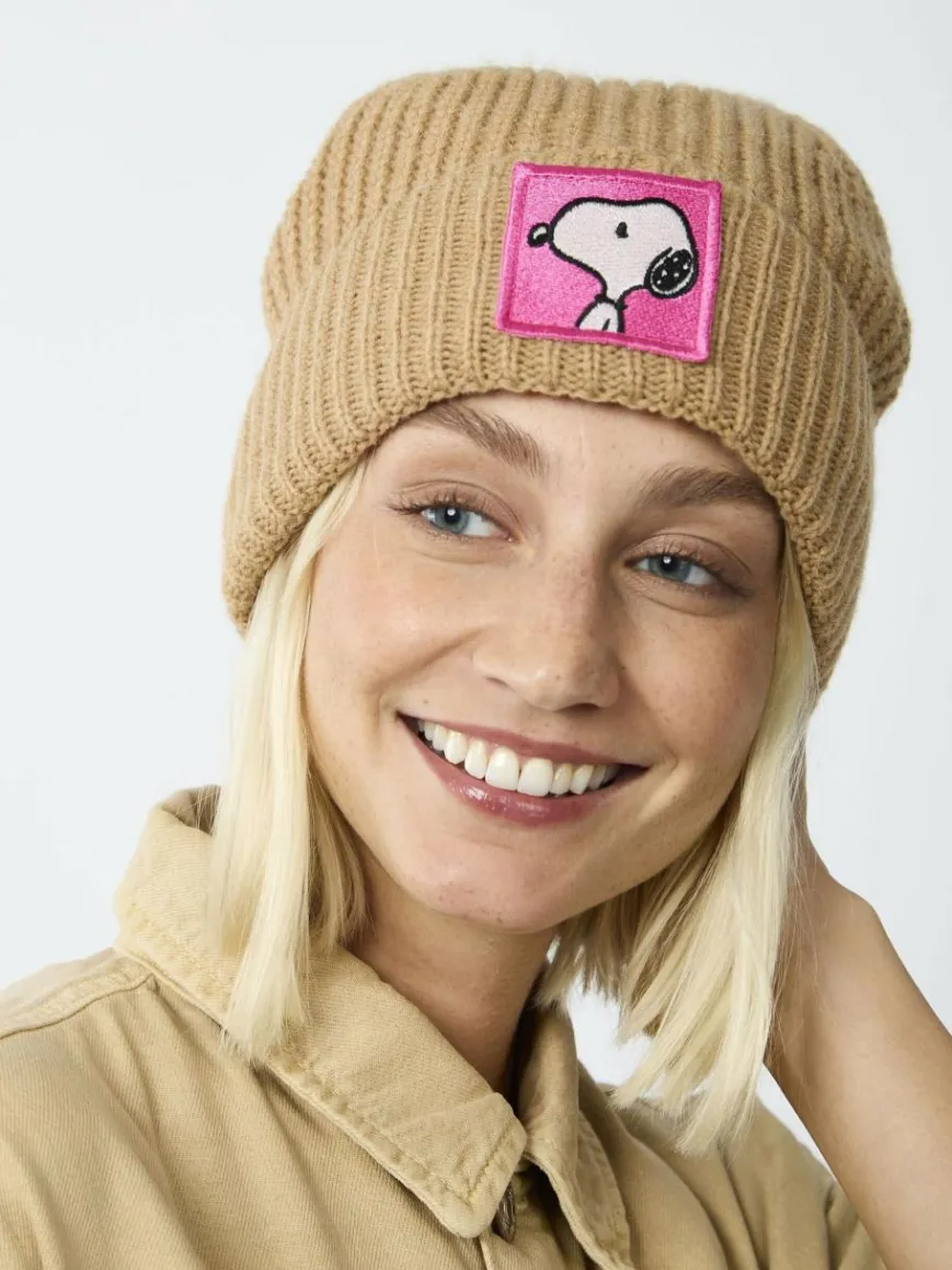 Peanuts™ Fans lieben diese Rippstrick-Mütze, weil sie so cosy ist und dank weichem Fleece-Futter garantiert nicht kratzt. Die Mütze ist aus unserer kuscheligen #19 WINTER GOLD Qualität mit einem breiten Krempelrand und kleinem Peanuts™ Snoopy Patch gefertigt. Diese winterliche Strick-Qualität aus superweichem, robustem Polyacryl und feiner Wolle ist besonders soft und wärmend.