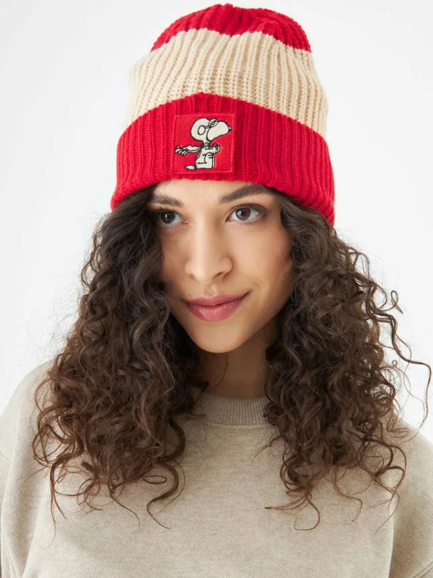 Peanuts™ Fans lieben diese Rippstrick-Mütze, weil sie so cosy ist und dank weichem Fleece-Futter garantiert nicht kratzt. Die Mütze ist aus unserer kuscheligen #19 WINTER GOLD Qualität mit einem breiten Krempelrand und kleinem Peanuts™ Snoopy Patch gefertigt. Diese winterliche Strick-Qualität aus superweichem, robustem Polyacryl und feiner Wolle ist besonders soft und wärmend.