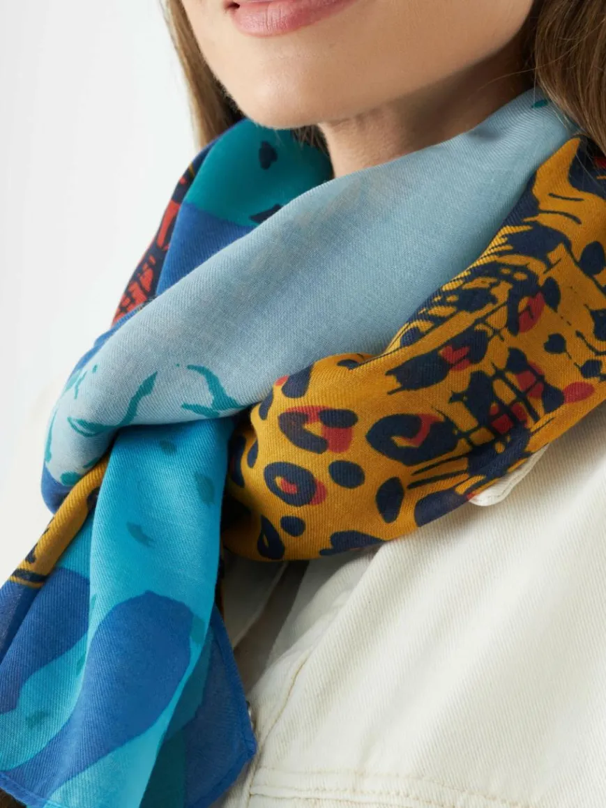 Animal-Schals sind und bleiben heißbegehrt. Besonders, wenn sie sich mit Wildkatzen im Großformat so schön exotisch zeigen, wie dieser Schal aus #2 POLY PERFECT mit plakativen Leo- und Tiger-Motiven. Wenn du möchtest, dass man die Wildkatzen ganz sehen kann, trägst du den Schal am besten wie eine Stola breit über beide Schultern gelegt. Für einen verantwortungsvollen Einsatz von Ressourcen wurde der Schal aus recyceltem Polyester nachhaltig hergestellt.