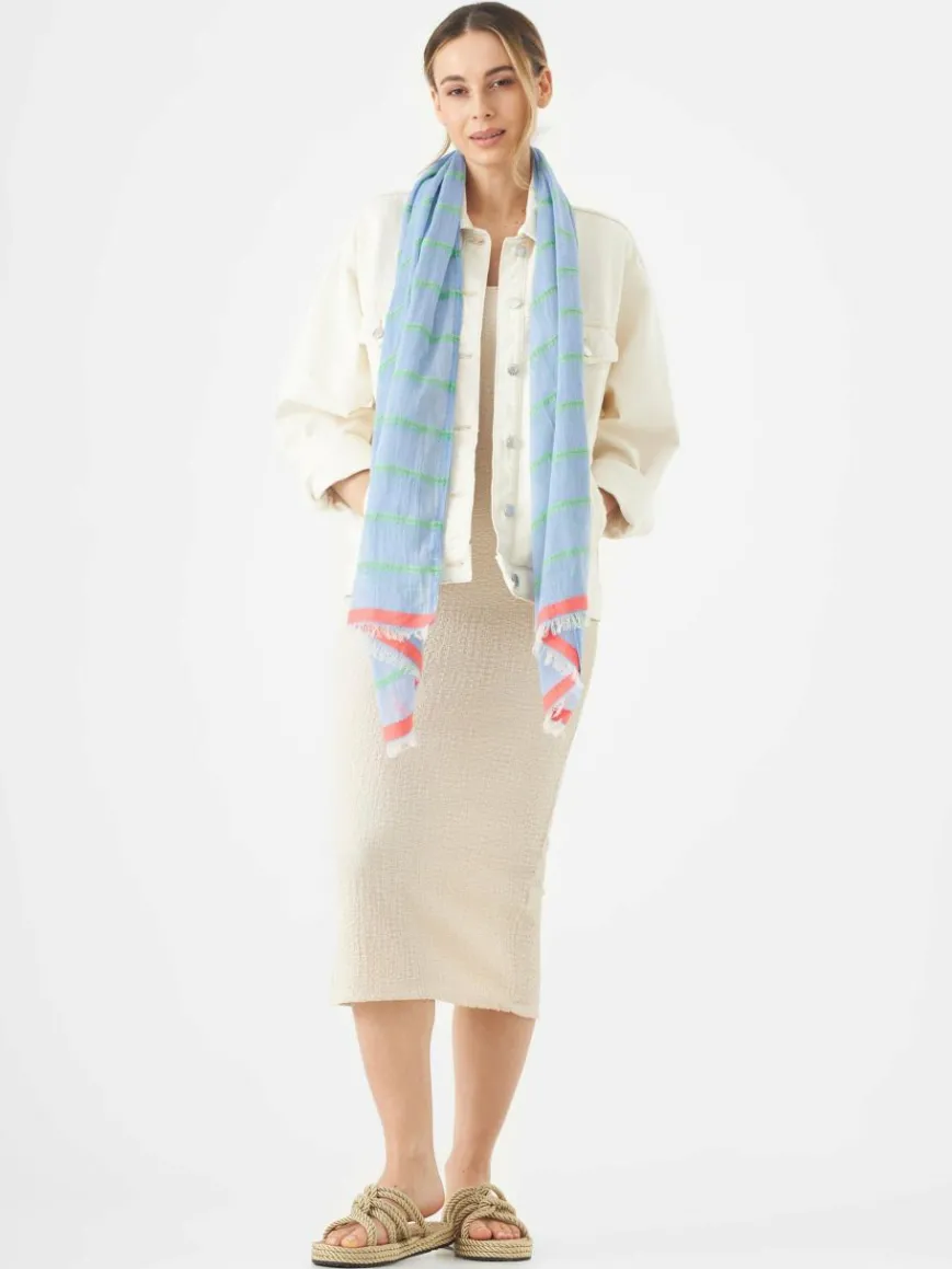 Trendsetterinnen tragen den Schal aus feiner Baumwolle als Highlight zu Sommer-Basics wie Shirt und weißer Hose. Auch zu luftigen Kleidern wirkt der Schal mit gewebten Querstreifen fashionable. Die Baumwoll-Qualität ist leicht, aber standfest, unkompliziert und hautfreundlich. Sie ist sehr vielseitig einsetzbar und überaus strapazierfähig. Das macht Baumwolle zu einer der wichtigsten Qualitäten in unserem Produkt-Portfolio.