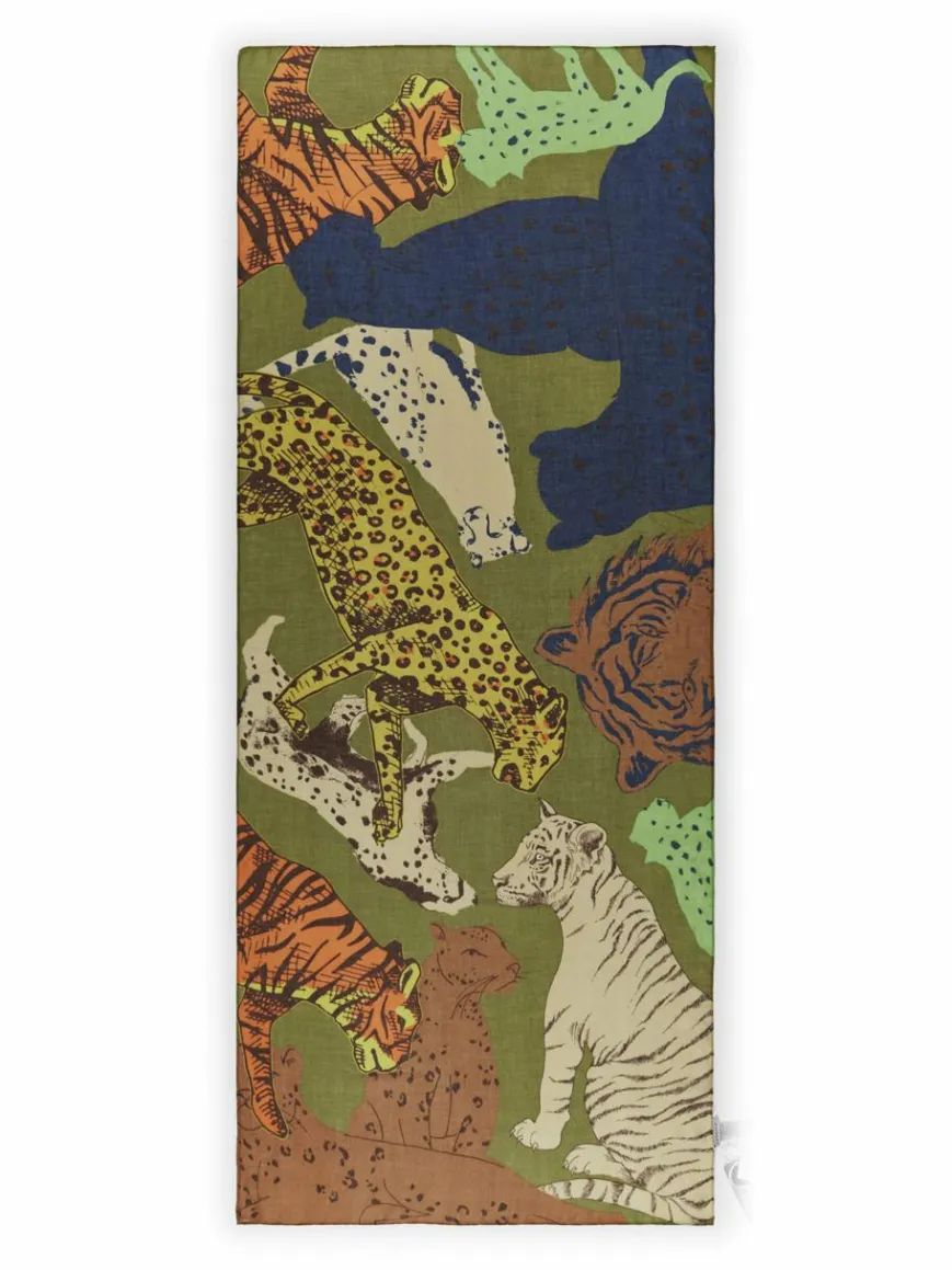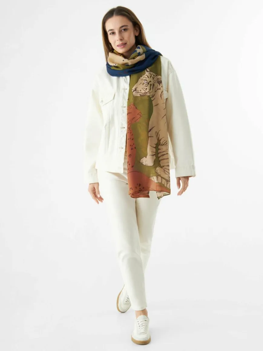 Animal-Schals sind und bleiben heißbegehrt. Besonders, wenn sie sich mit Wildkatzen im Großformat so schön exotisch zeigen, wie dieser Schal aus #2 POLY PERFECT mit plakativen Leo- und Tiger-Motiven. Wenn du möchtest, dass man die Wildkatzen ganz sehen kann, trägst du den Schal am besten wie eine Stola breit über beide Schultern gelegt. Für einen verantwortungsvollen Einsatz von Ressourcen wurde der Schal aus recyceltem Polyester nachhaltig hergestellt.