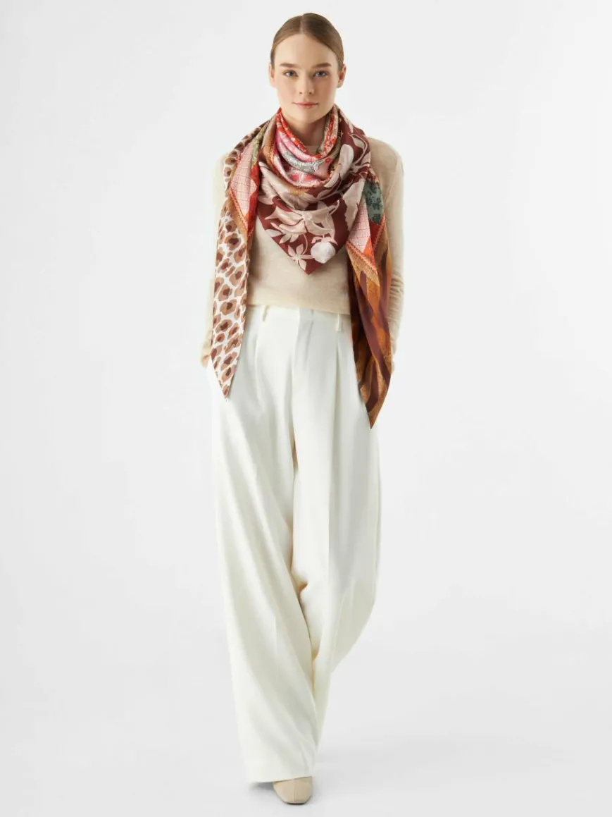 Dieses elegante Dreieckstuch aus feiner Seide macht jedes Outfit besonders. Es ist beidseitig im Pattern-Mix bedruckt und sieht im Sommer auch zum Top geknotet super aus. Hergestellt in einer chinesischen Seidenmanufaktur, überzeugt es durch seinen kühlen, geschmeidigen Griff, luxuriösen Tragekomfort und brillante Farben.
