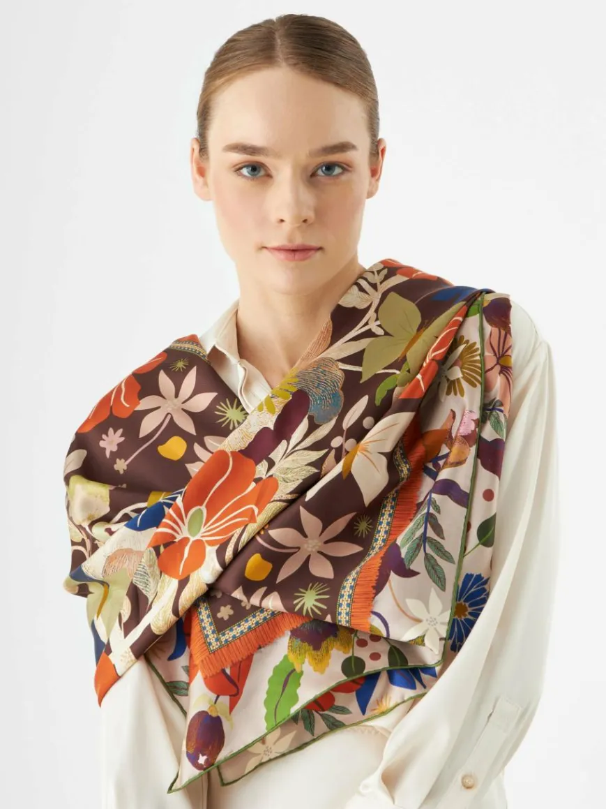 Dieses Premium Seidentuch mit zauberhaftem Blumenmuster ist immer ein edler Akzentgeber. Es lässt sich als Halstuch zum klassischen Business-Anzug stylen, veredelt Jeans-Looks und macht auch mal ins Haar ins Haar gebunden Stil-Karriere. Das beidseitig bedruckte Seidentuch wurde aus #1 PURE SILK in einer ausgewählten chinesischen Seidenmanufaktur aus wertvoller Seide gefertigt.