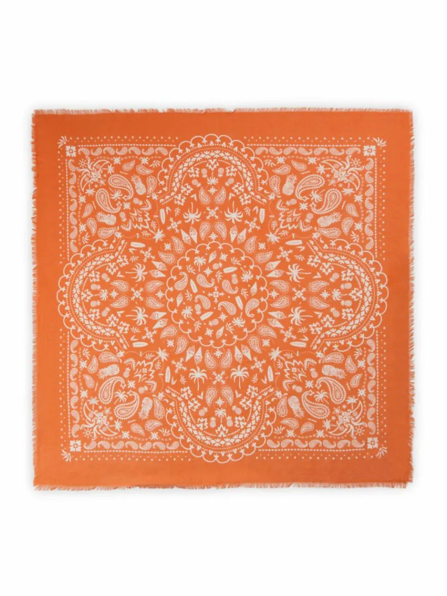 Easy Cool – mit einem Hauch Sommerfeeling. Dieses stylische Carré aus einem soften Modal-Baumwoll-Mix verbindet klassischen Bandana-Charme mit liebevoll verspielten Details: In das weiße Paisley-Muster sind sommerliche Motive wie Softeis, Palmen, Ananas und Surfbretter eingearbeitet – dezent, charmant und absolut einzigartig. Mit seiner großzügigen Größe von 70 x 70 cm ist es ein echtes Multitalent: Ob lässig um den Hals, als Hairwrap, Kopftuch, Taschen-Accessoire oder sogar als Bandeau-Top.