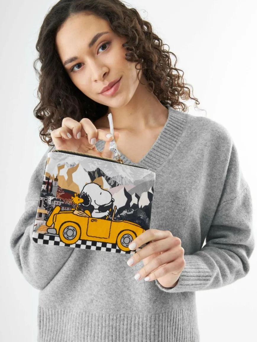 Peanuts™ Fans sind auch auf Reisen gerne stylisch unterwegs. Da ist diese Peanuts™ Kulturtasche, auf der Snoopy in einem knallgelben Auto in den Bergen auf Entdeckungsreise geht, dein neuer Trendbegleiter. Aus strapazierfähigem Canvas designt, ist die Beauty Bag so schick wie praktisch. Du kannst in ihr nicht nur deine Schönheitsutensilien verstauen, sondern sie auch als Clutch benutzen.