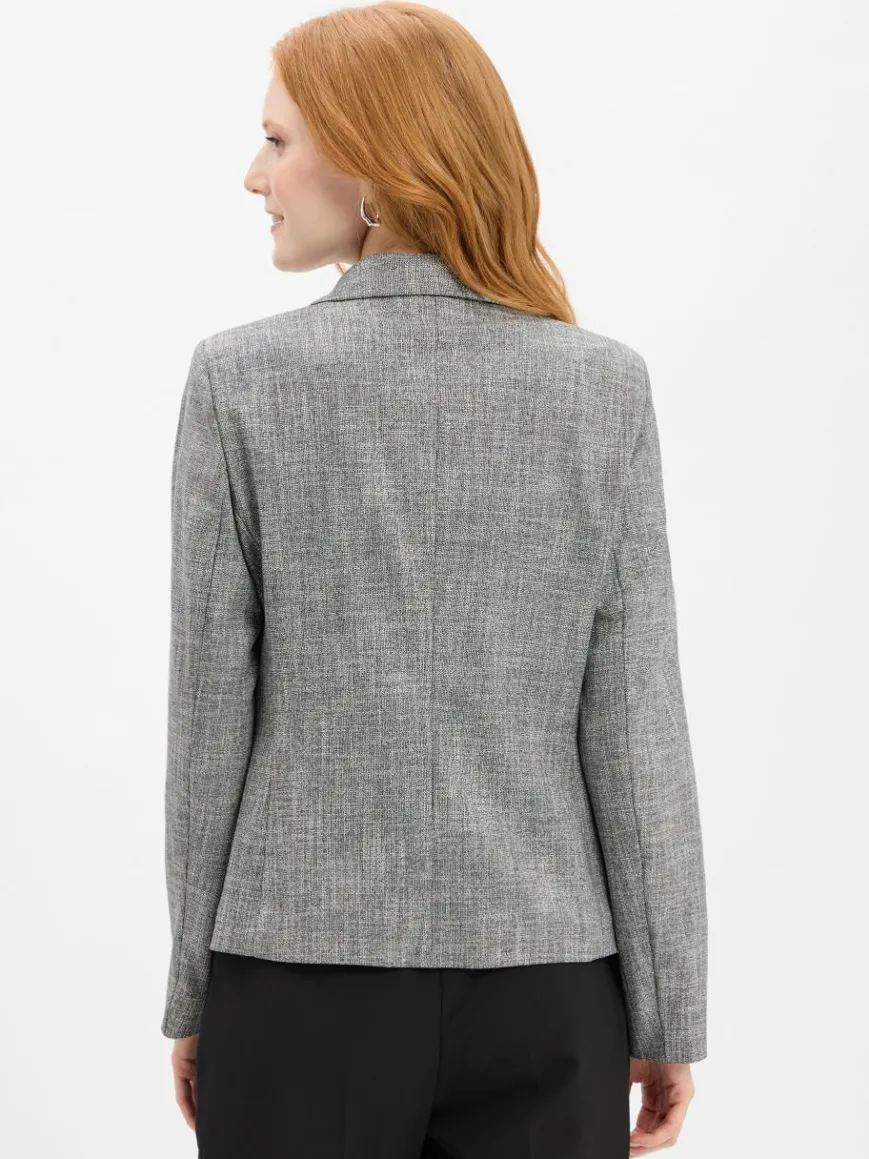 Ein klassisches Update für den Look ist der comma Blazer im fein gemusterten Viskosemix mit Revers, einem Knopf und stilvollen Leistentaschen.
