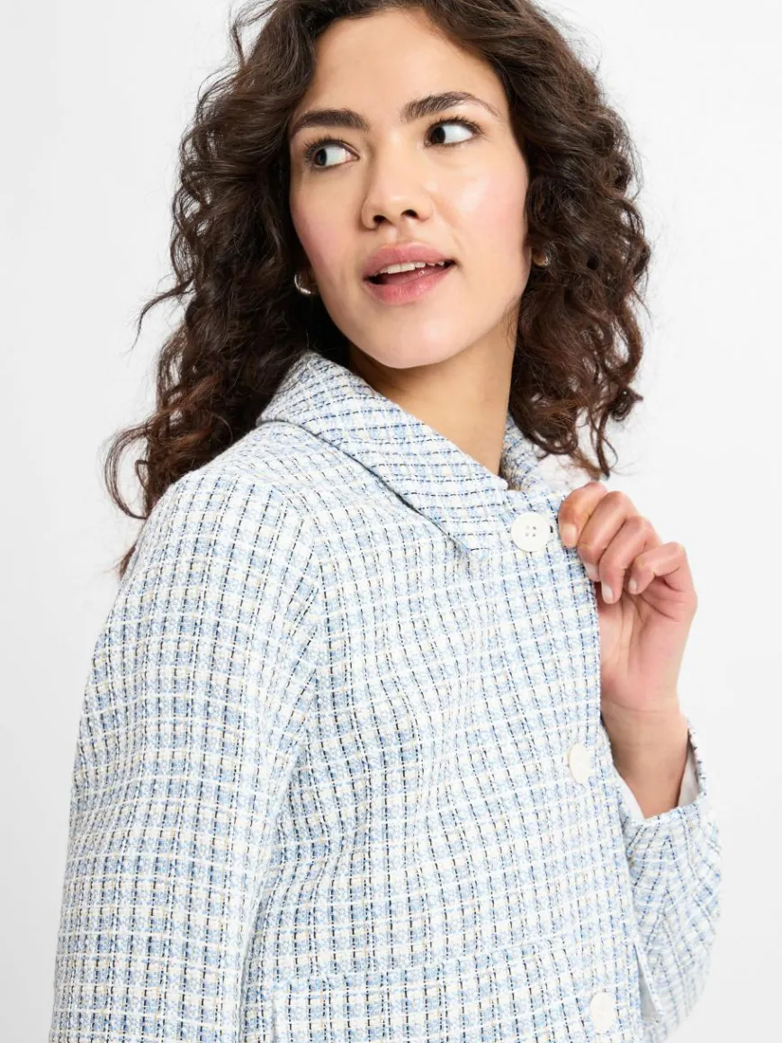 Der karierte Kurzblazer von comma aus fein strukturiertem Material ist locker geschnitten und macht nicht nur im Büro, sondern auch in der Freizeit eine gute Figur.