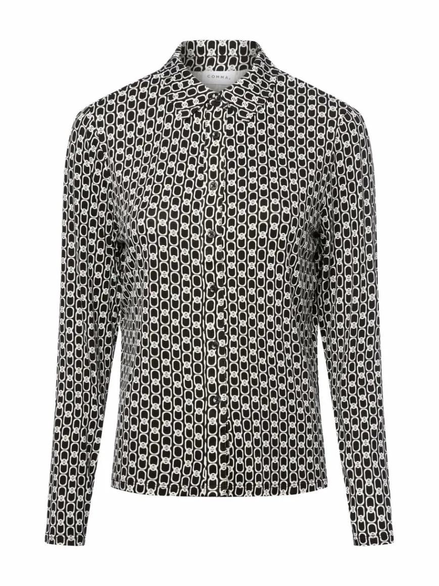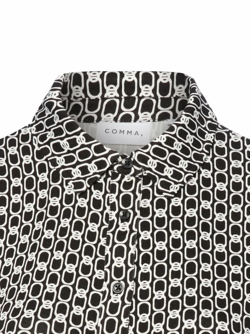 Die Hemdbluse von comma zeichnet sich durch die stretchige Viskose und das damit verbundene angenehme Tragegefühl aus, ergänzt durch das symmetrische Muster für den optischen Feinschliff.