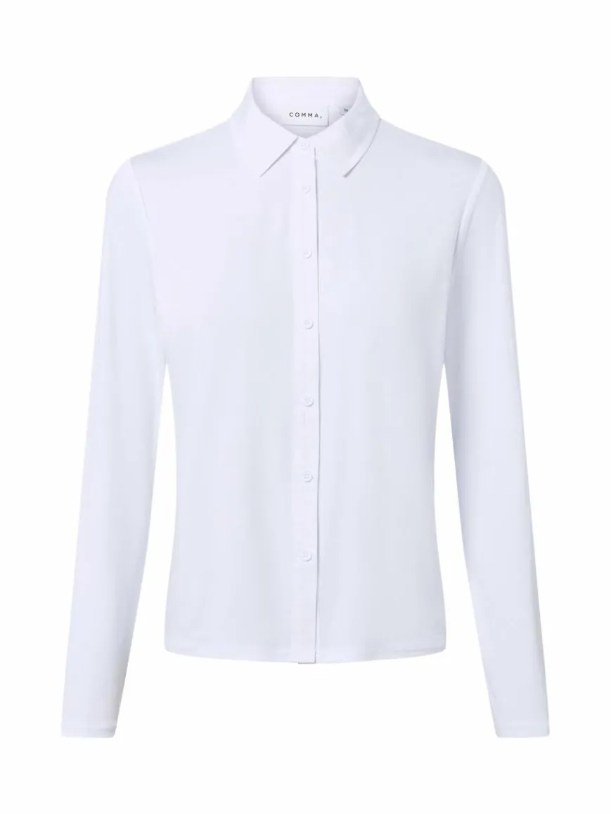 Die comma Bluse aus softem Jersey besticht mit einer stilvollen Mischung aus Lässigkeit und eleganten Elementen wie dem Ton-in-Ton-Look.