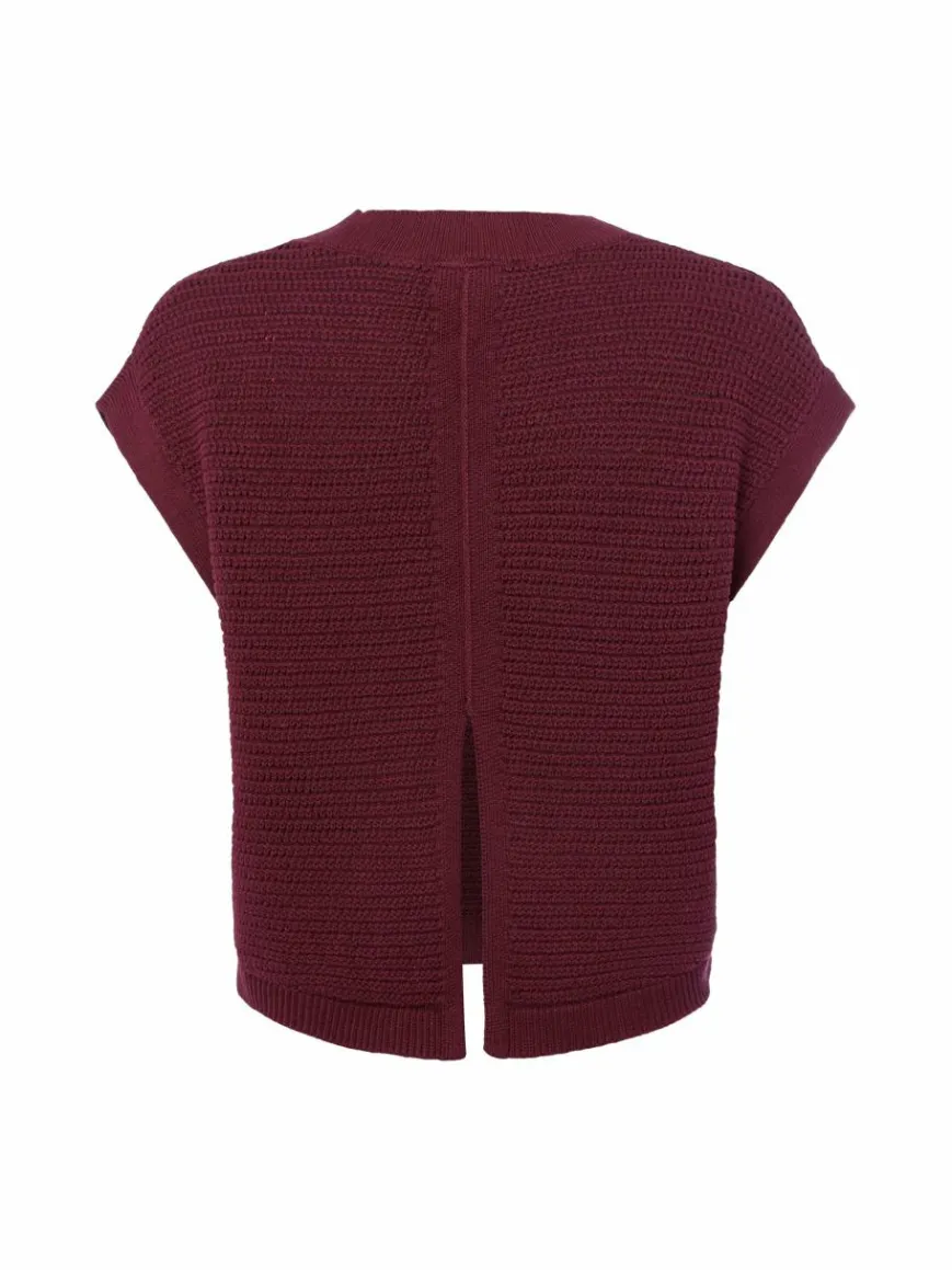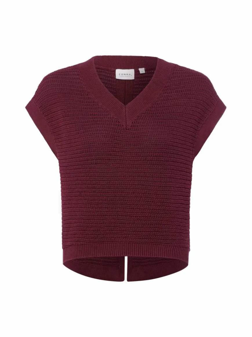 Stilvolles Layering-Piece mit feinen Details wie dem femininen V-Ausschnitt und einem rückseitigen Bewegungsschlitz: der Pullunder von comma casual identity aus Baumwollstrick.