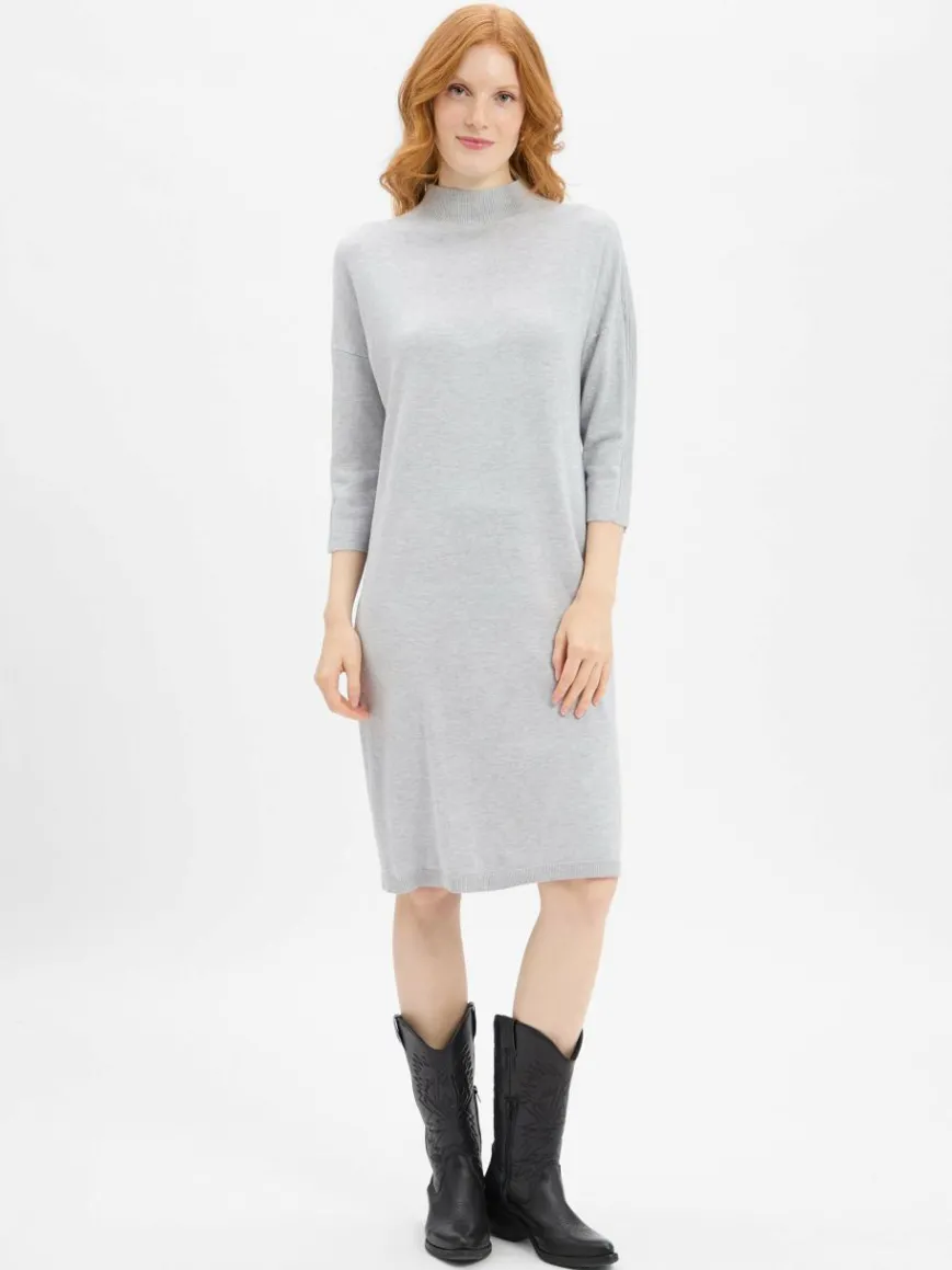 Das Strickkleid von comma besticht durch ein cleanes Design mit strukturierten Kontrastpartien und einen komfortablen Jersey – perfekt für entspannte Alltagslooks.