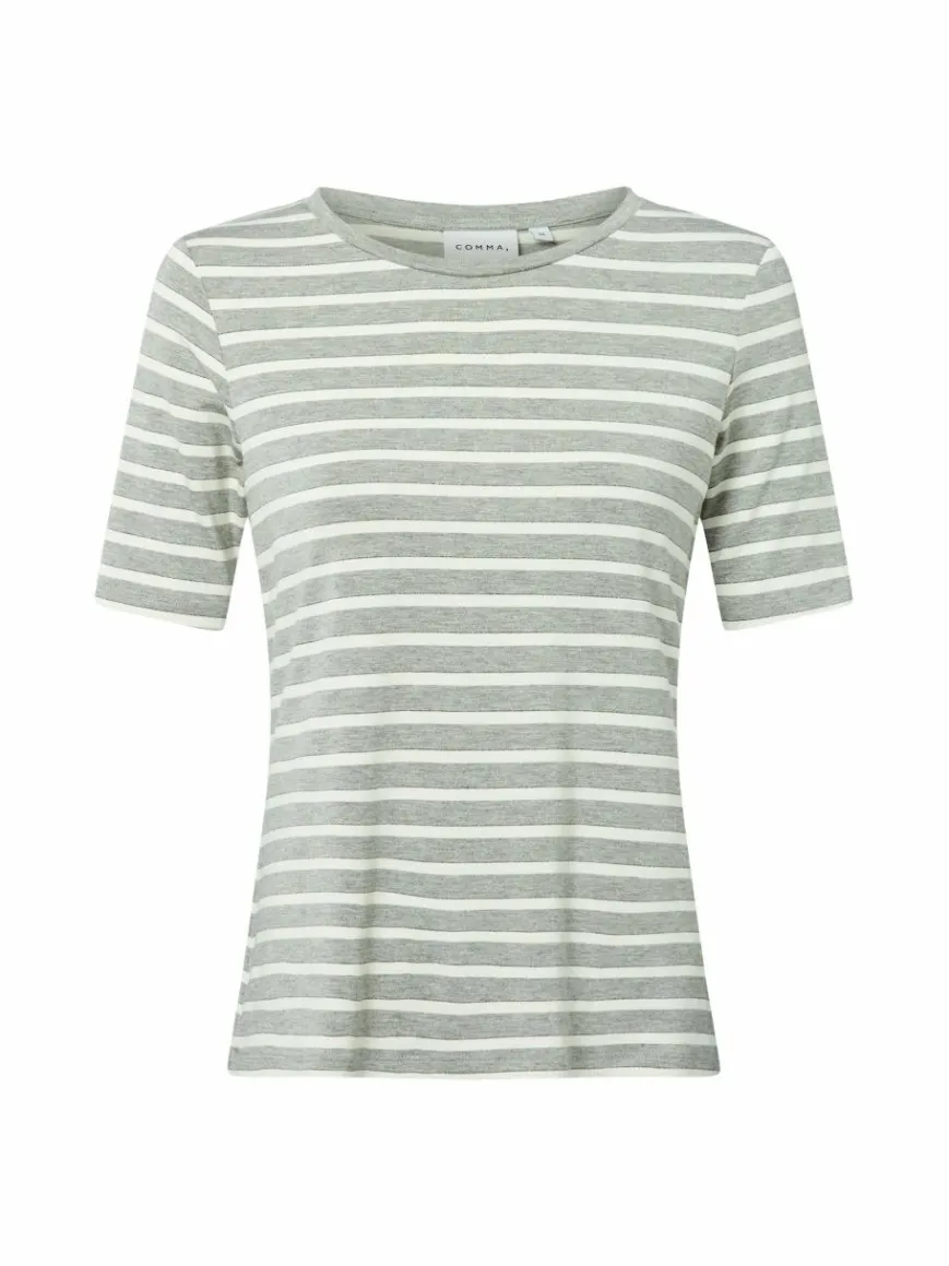 comma Shirts & Tops*Damen T-Shirt hellgrau ecru gestreift