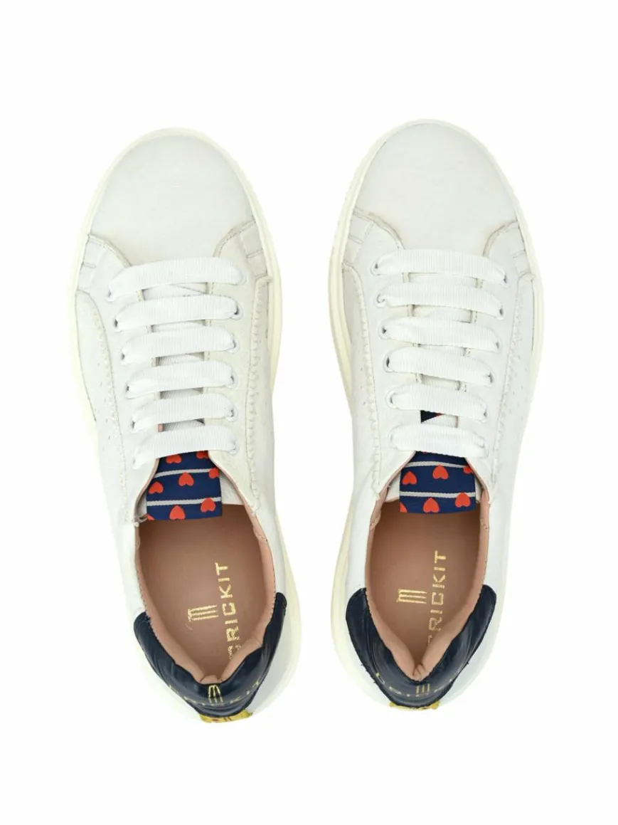 Klassischer Sneaker aus super weichem Rindsleder. Die gestreifte Zunge mit süßem Herz-Druck ist ein absoluter Hingucker! Wir bleiben uns treu mit der typischen Crickit Naht an der Ferse. Abgerundet wird dieser tolle Sneaker durch die bequeme Komfortlaufsohle. Stylisch und lässig – perfekt zu Blue Jeans.