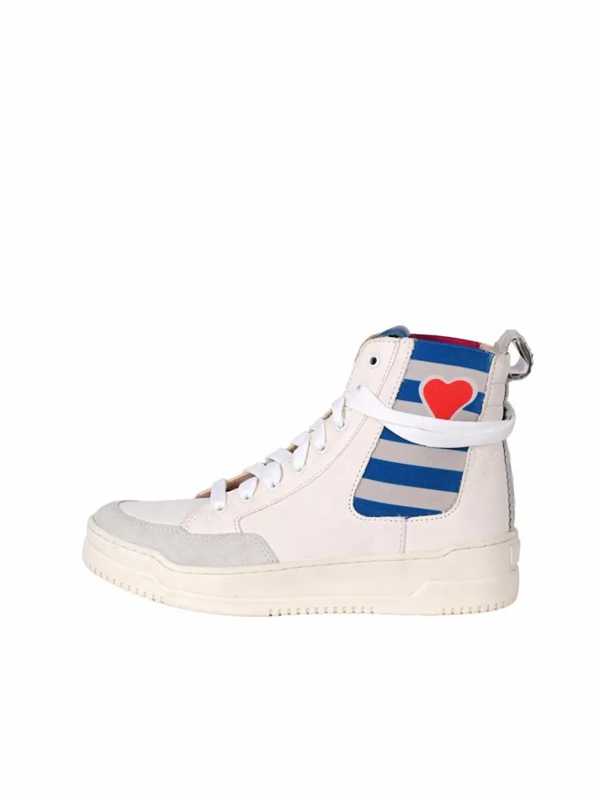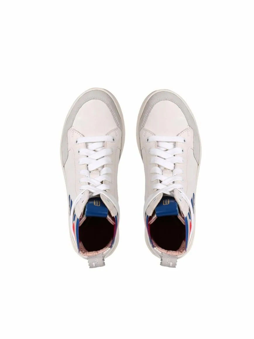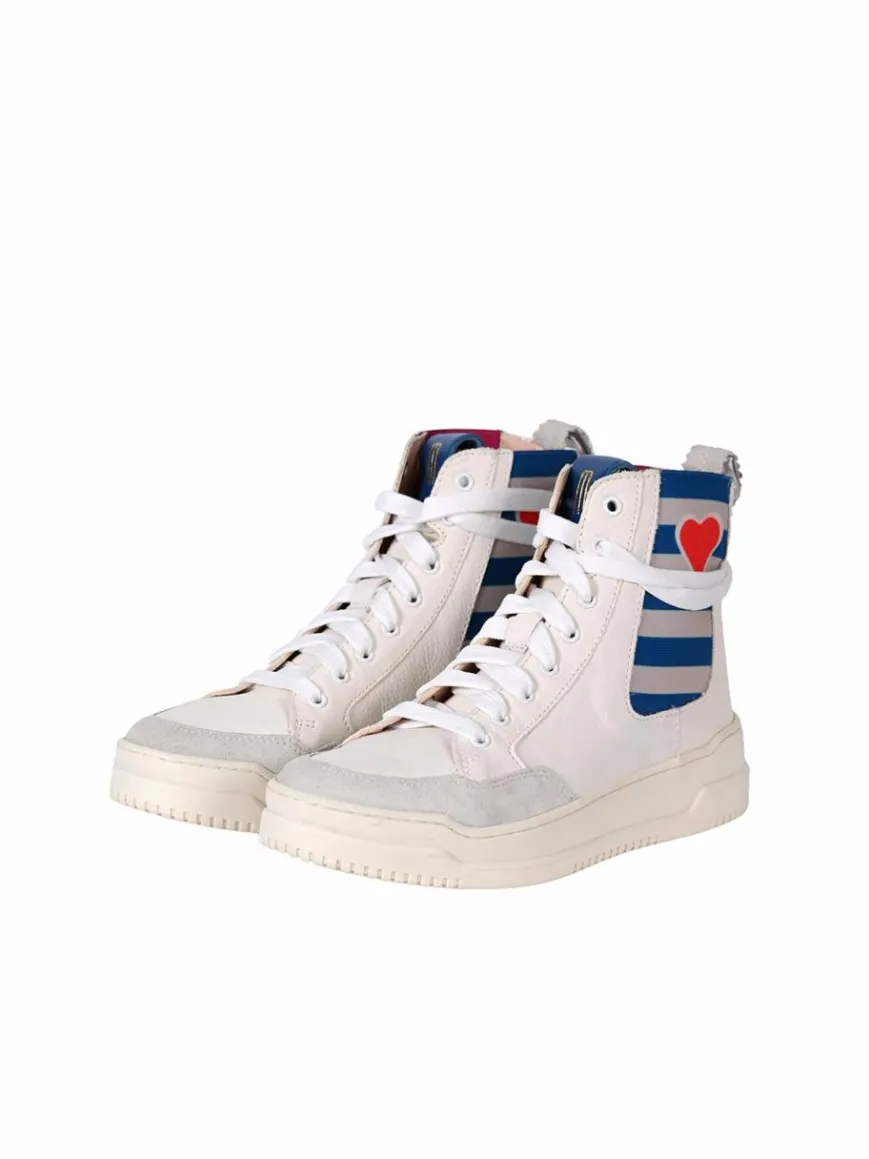 Liebevolles Design und unverwechselbare Qualität – dafür stehen die hochwertigen Schuhe von CRICKIT aus Hamburg. Der High Sneaker MAXIE begeistert mit dem Materialmix aus Leder und Stretcheinsätzen. Dank der Schnürung lässt sich dieser Turnschuh optimal an den Fuß anpassen und mit der Ziehlasche an der Ferse gelingt das Anziehen ganz unkompliziert. Eine robuste Laufsohle und eine herausnehmbare Innensohle mit Memoryfoam runden den Look ab.