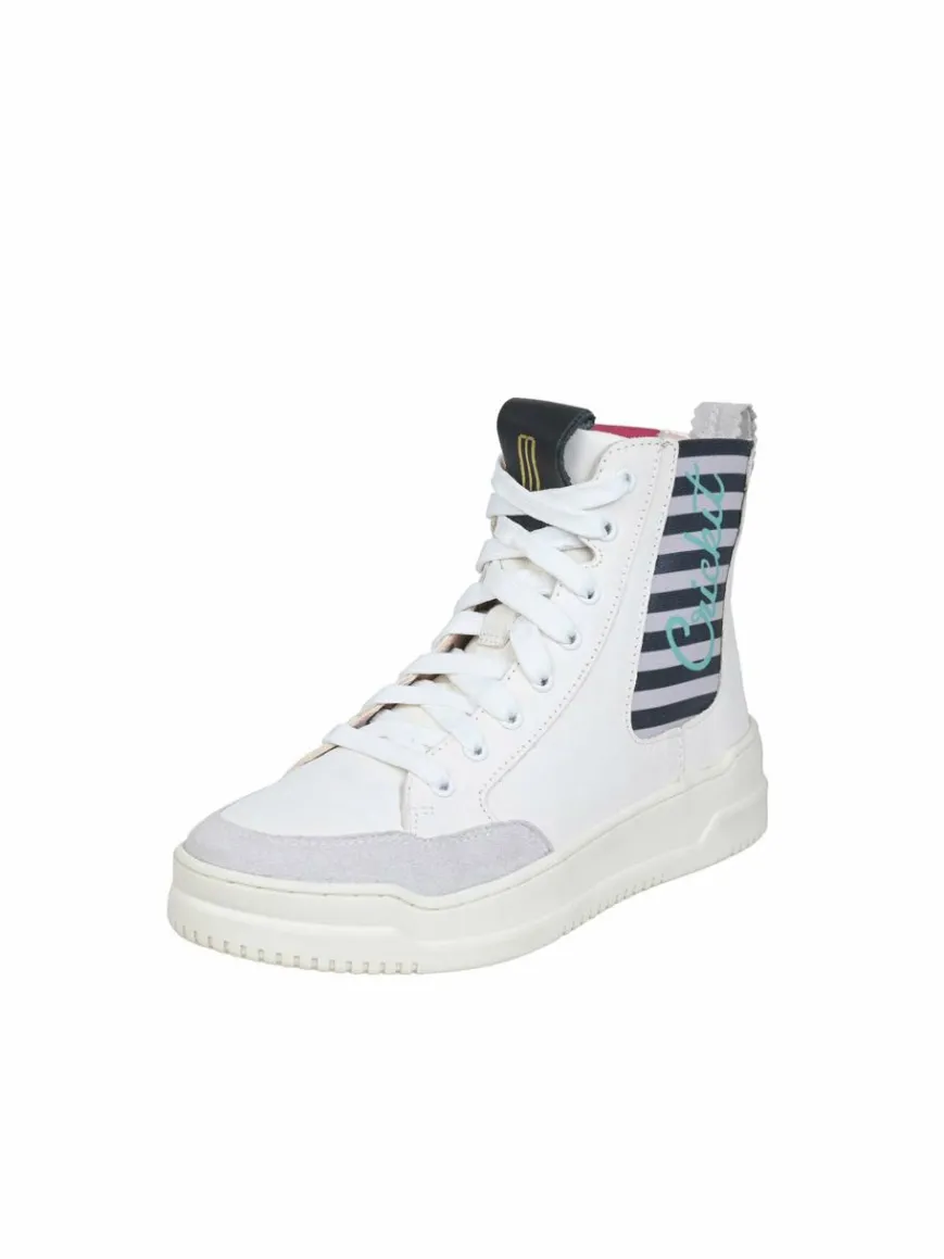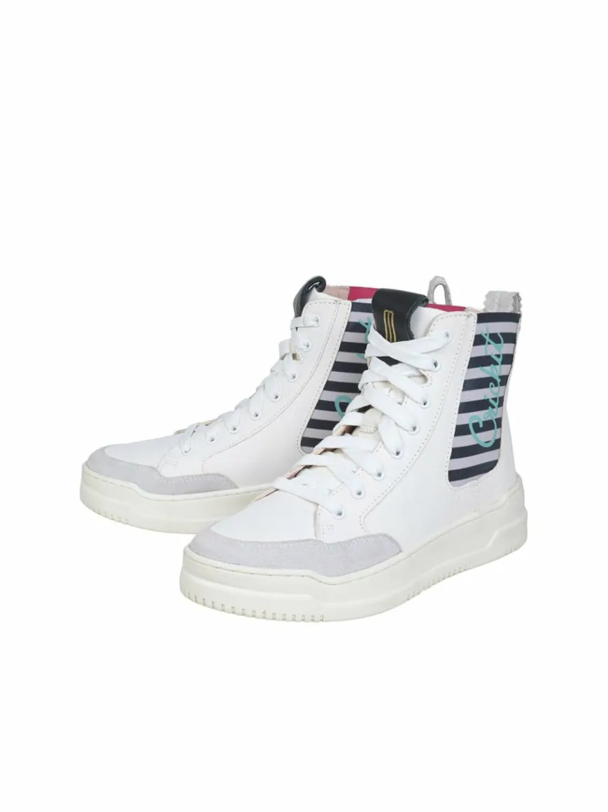 Liebevolles Design und unverwechselbare Qualität – dafür stehen die hochwertigen Schuhe von CRICKIT aus Hamburg. Der High Sneaker MAXIE begeistert mit dem Materialmix aus Leder und Stretcheinsätzen. Dank der Schnürung lässt sich dieser Turnschuh optimal an den Fuß anpassen und mit der Ziehlasche an der Ferse gelingt das Anziehen ganz unkompliziert. Eine robuste Laufsohle und eine herausnehmbare Innensohle mit Memoryfoam runden den Look ab.