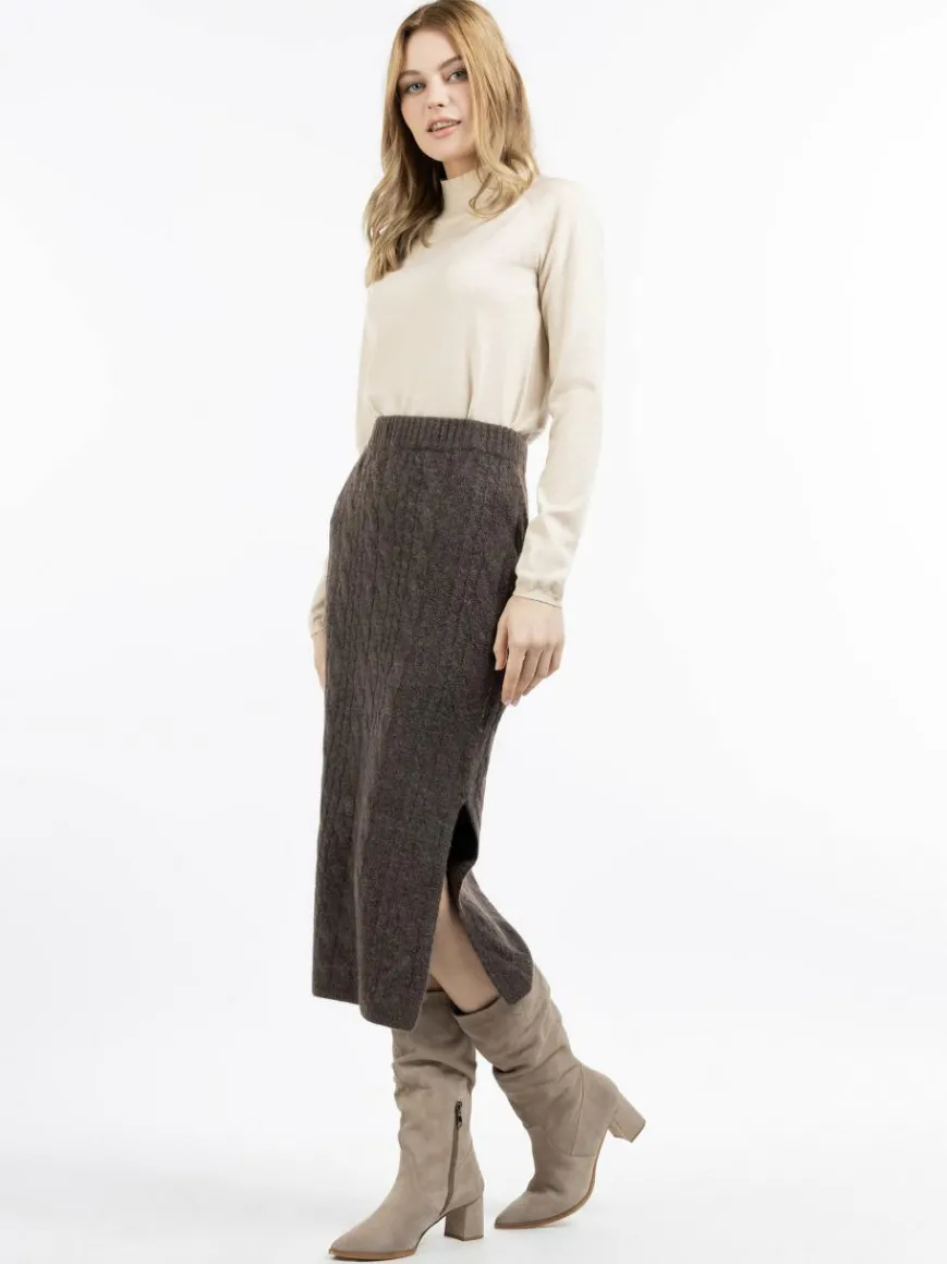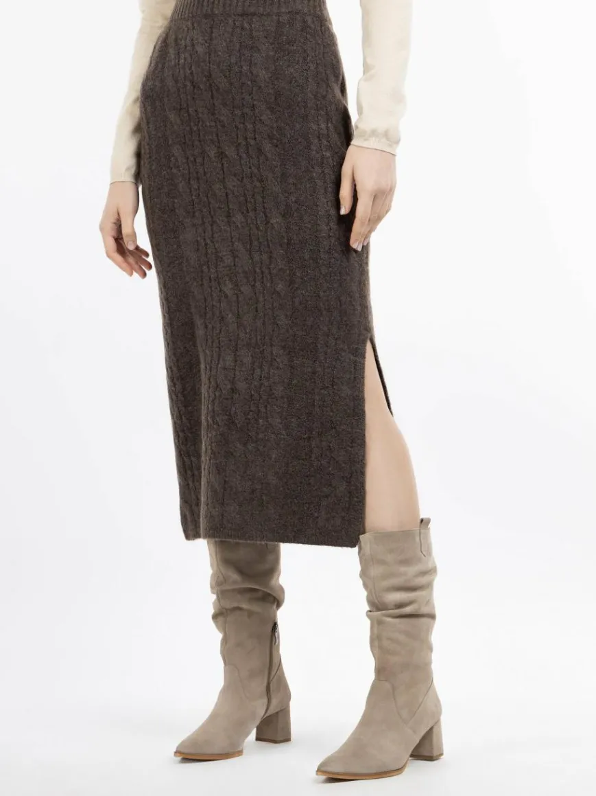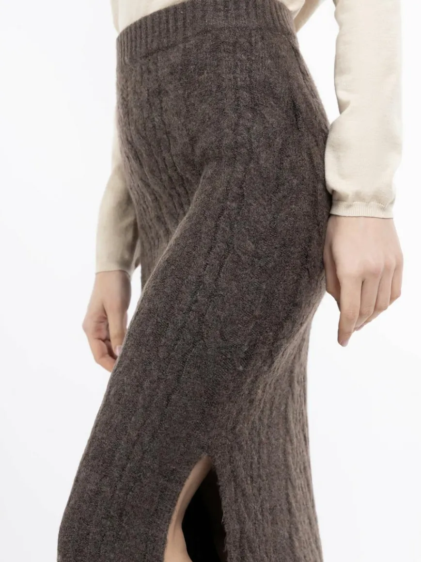 Dreimaster Röcke*Damen Strick Midirock braun uni