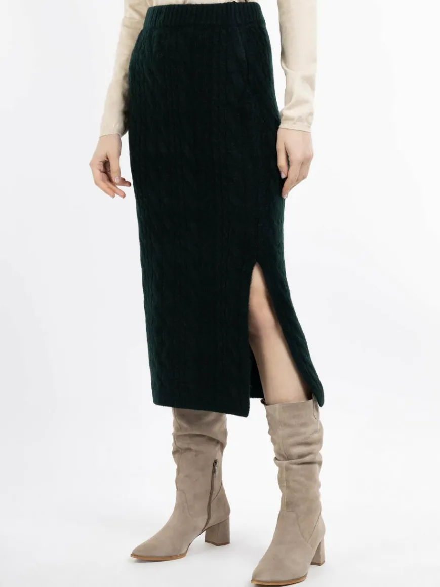 Dreimaster Röcke*Damen Strick Midirock grün uni