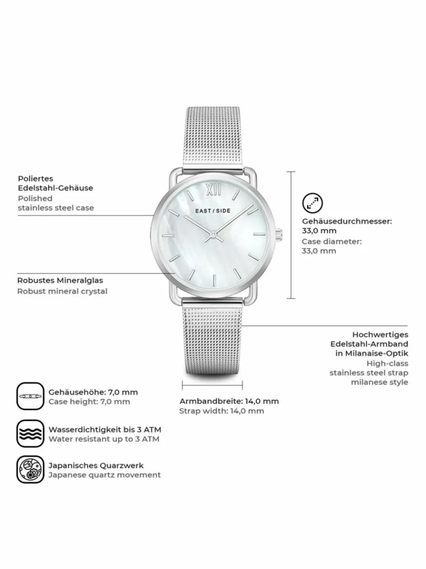 Eastside Uhren*Damen Armband-Uhr – Pearl Moon silber uni
