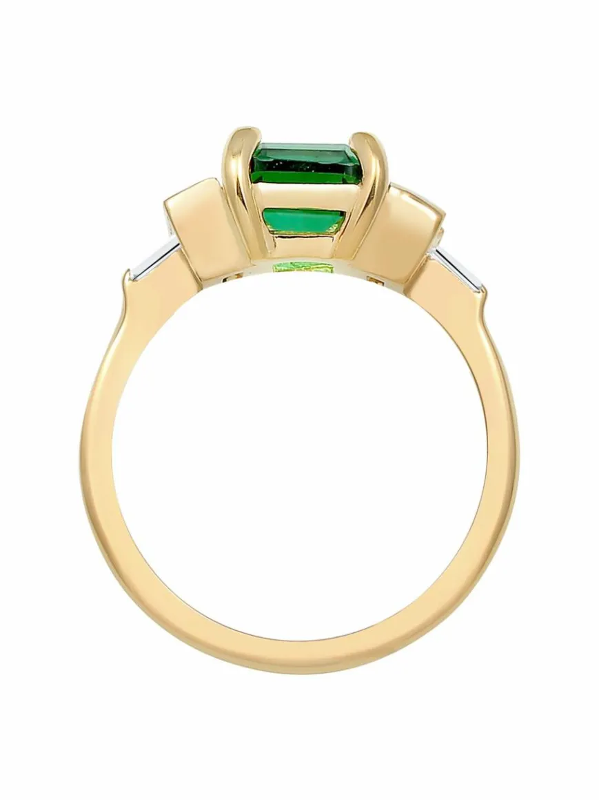 Entdecken Sie den Zauber dieses eleganten Rings, der Ihre Abendgarderobe perfekt ergänzt. Gefertigt aus 925 Sterling Silber goldplattiert, strahlt dieser Ring in einem glänzenden Goldton. Der zentrale grüne Quarz im Smaragdschliff (Grün) wird von funkelnden weißen Topasen im Baguette- und Smaragdschliff (Weiß) umrahmt, die in einer kunstvollen Krappenfassung gehalten werden. Die Kombination aus den edlen Steinen und der hochwertigen Verarbeitung macht diesen Ring zu einem wahren Schmuckstück. Lassen Sie sich von der zeitlosen Eleganz und dem raffinierten Design inspirieren. Perfekt als Geschenkidee für besondere Anlässe. Erleben Sie die Schönheit und das handwerkliche Können, das in jedem Detail steckt. Entdecken Sie weitere Schmuckstücke und lassen Sie sich verzaubern.Dieses exklusive Schmuckstück ist ein Elli PREMIUM Produkt und wird in einer eleganten Geschenk-Box geliefert.
