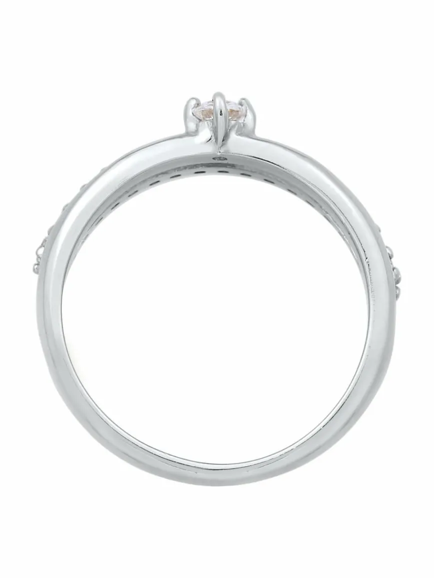 Dieser wunderschöner Damenring mit geteilter Ringschiene, präsentiert sich feminin im Design. Ein Eyecatcher dieses Schmuckstückes ist die doppelte Ringschiene und ein optischer Blickfang am Finger der Frau. Die glamouröse Formgebung sowie die mit Zirkonia besetzten Elemente sind ein strahlendes Highlight. Ein zeitloses Schmuckstück mit einem Hauch Extravaganz, für besondere Anlässe.