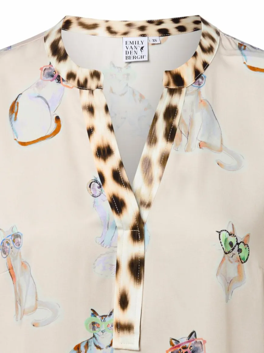 Purrrrrrfect: Die Bluse von Emily van den Bergh aus herrlich fließender Viskose begeistert mit coolem Animal-Print und gemusterten Kontrastdetails.