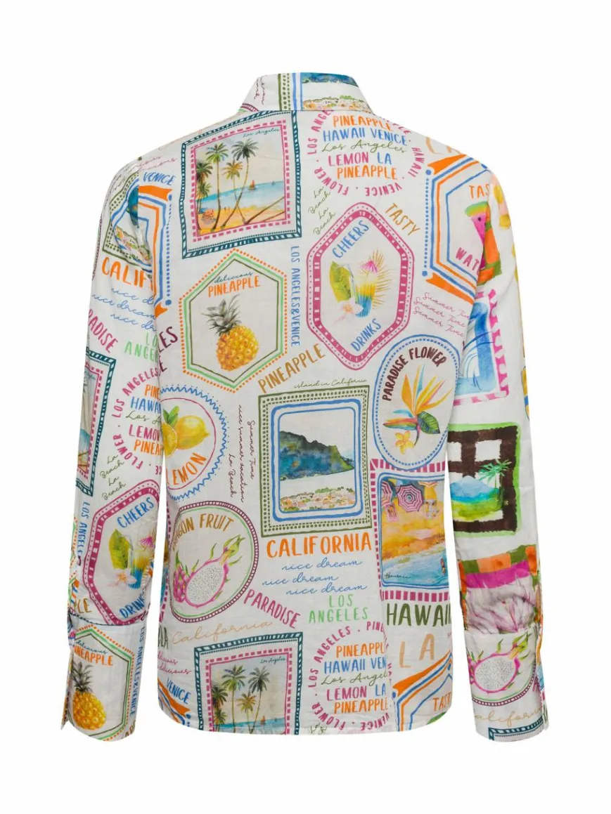 Die Baumwoll-Bluse von Emily van den Bergh überzeugt mit fröhlicher Farbgebung und klassischem Schnitt – ein farbenfrohes Highlight für stilvolle Sommeroutfits.