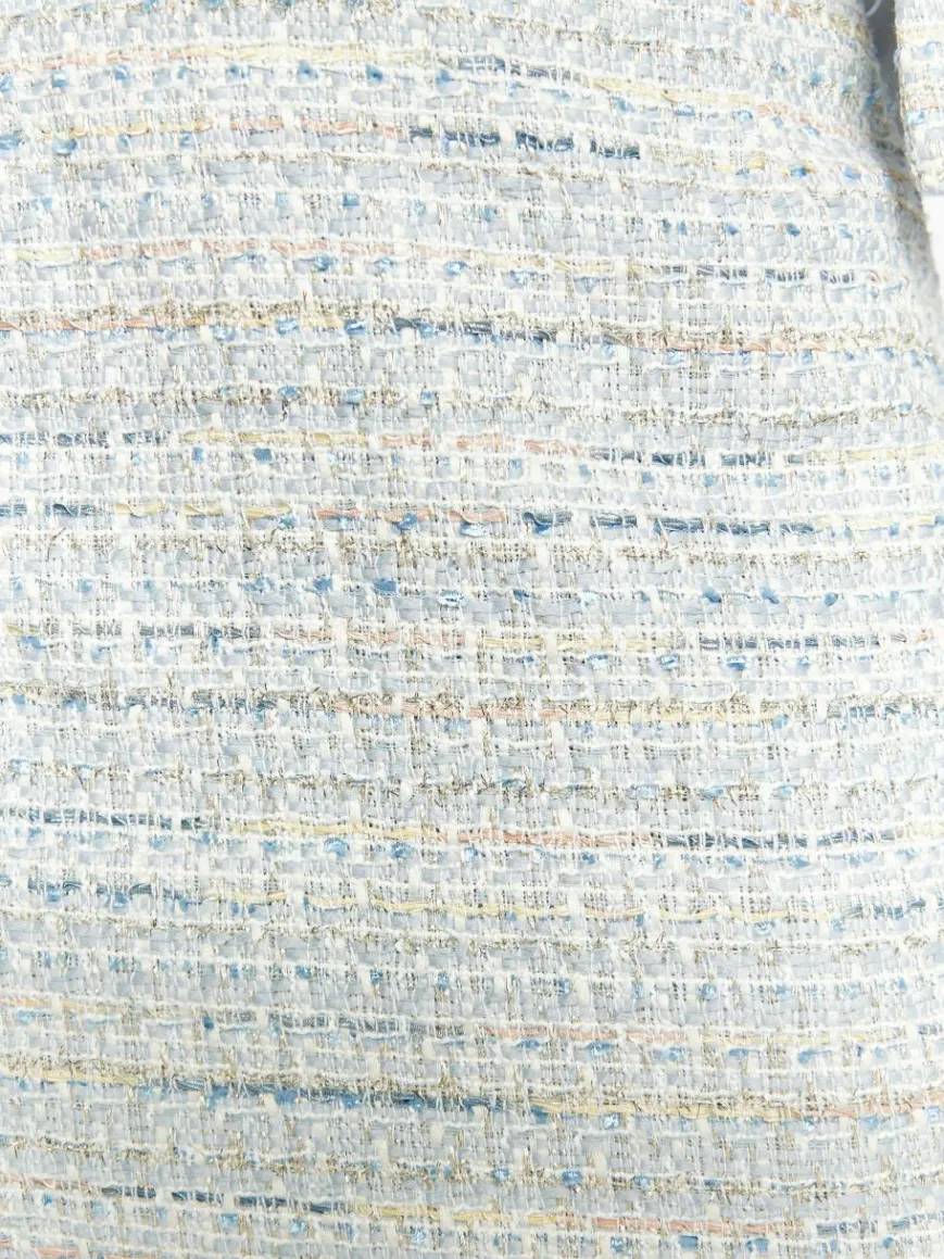 Zarte Pastelltöne dominieren den Look dieses Bouclé Rocks von faina. Unterstützt wird das französische Flair dabei durch die goldfarbenen Metallicfäden, die in den Rock mit eingewebt wurden. Ein geschmeidiges Innenfutter und ein Reißverschluss auf der Rückseite vervollständigen das Modell, das besonders zu den passenden Jacken der Brand seine Wirkung entfaltet.