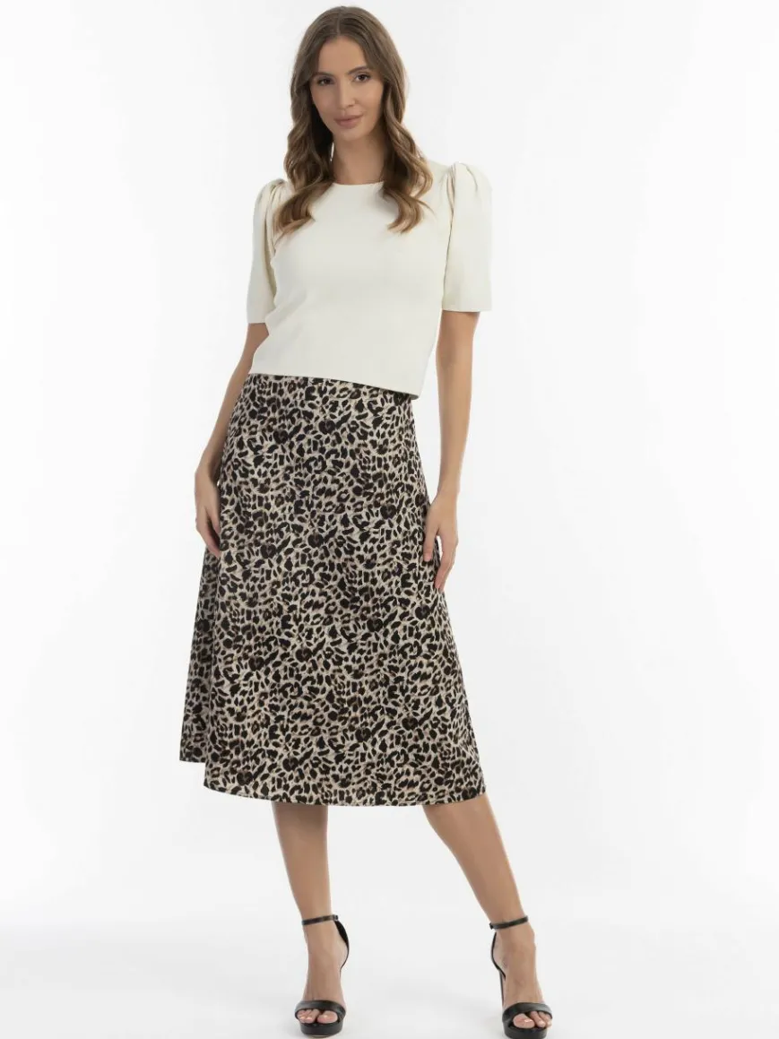 Faina Röcke*Damen Midirock mit Leo-Print beige gemustert
